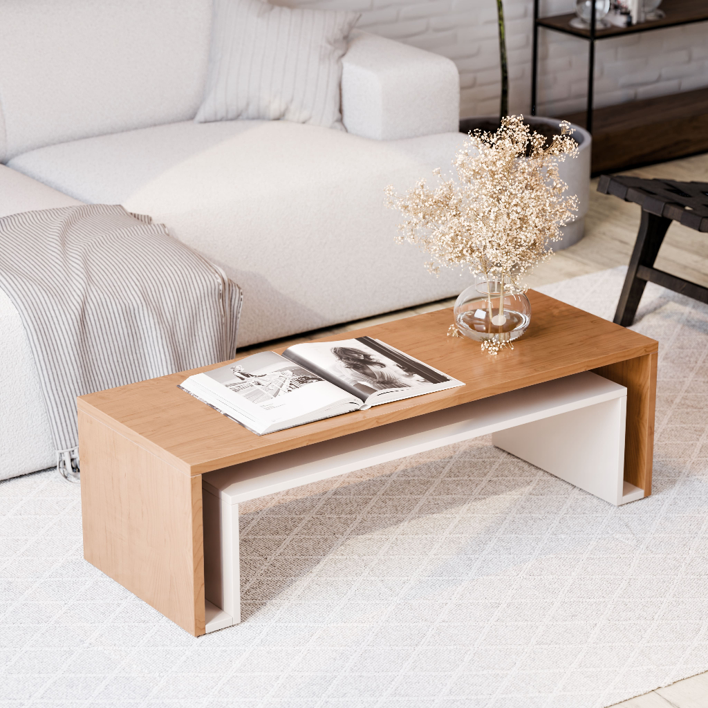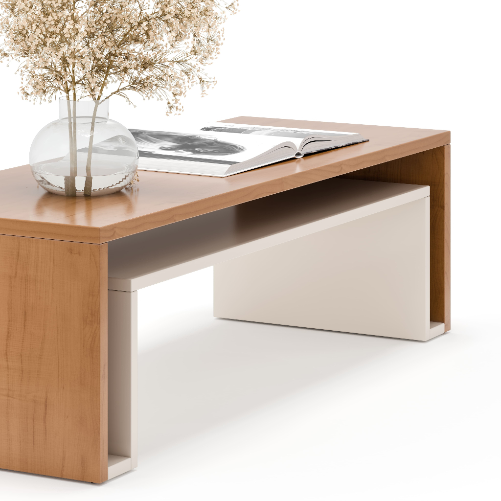 Mesa de Centro Livintus Nature Branco Moderna Decorativa Sala Estar Compacta Elegante com Nicho