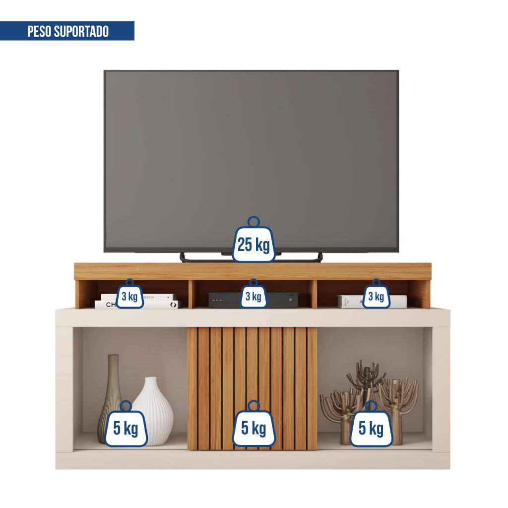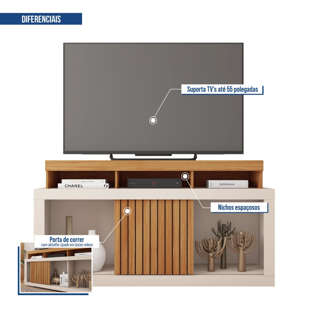 Rack para TV até 60 Polegadas Dragon com Nichos e Bancada para Sala MDF MDP Moderno