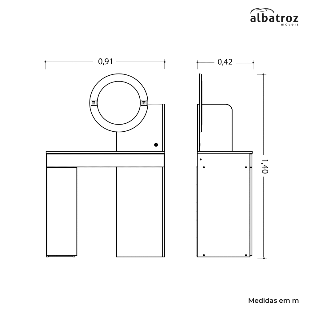 Penteadeira Camarim Áurea com Espelho 140cm – MDF/MDP, Bancada Maquiagem Moderna para Quarto