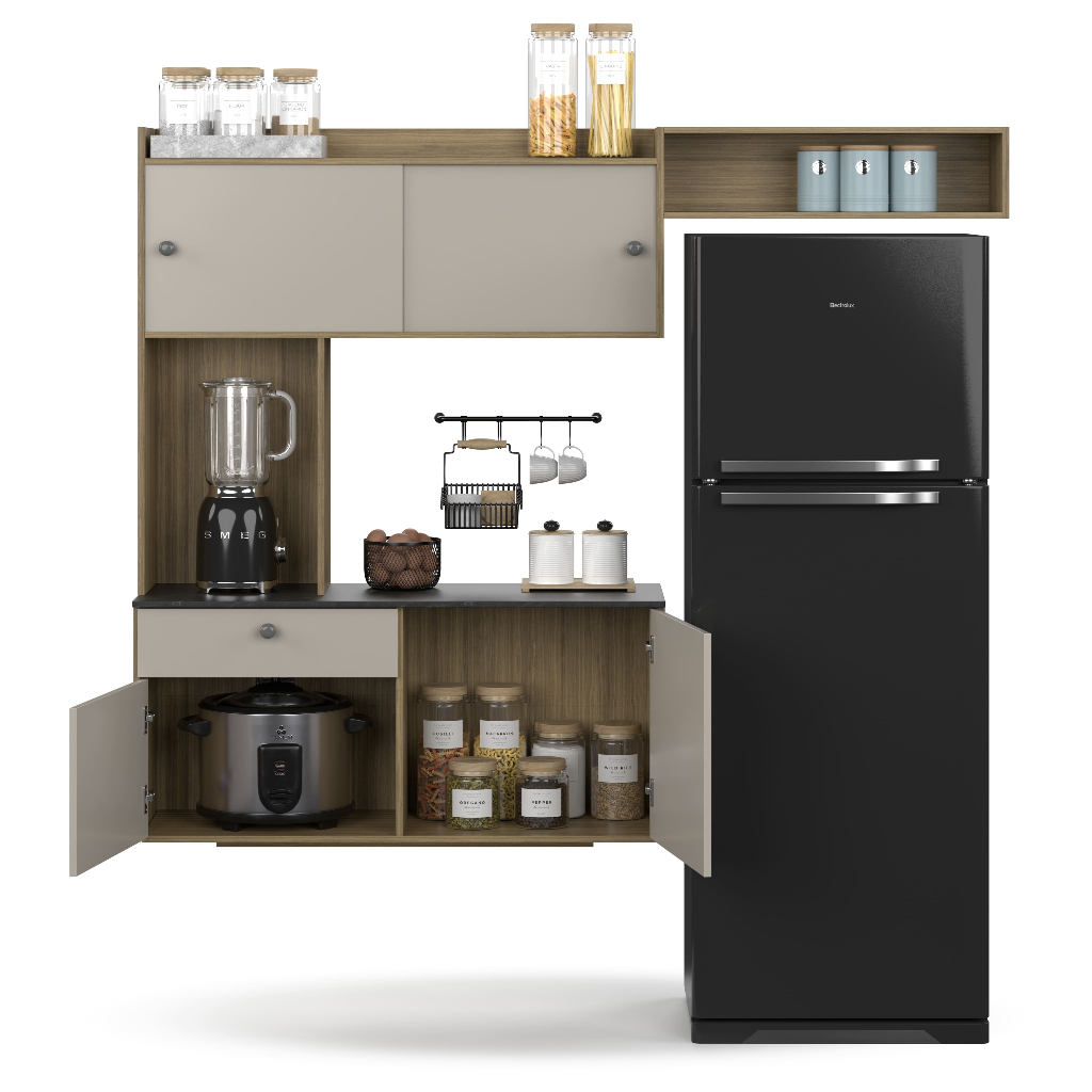 Armário de Cozinha Lara com Balcão Nicho para Eletros 4 Portas 1 Gaveta MDF MDP Compacto Moderno