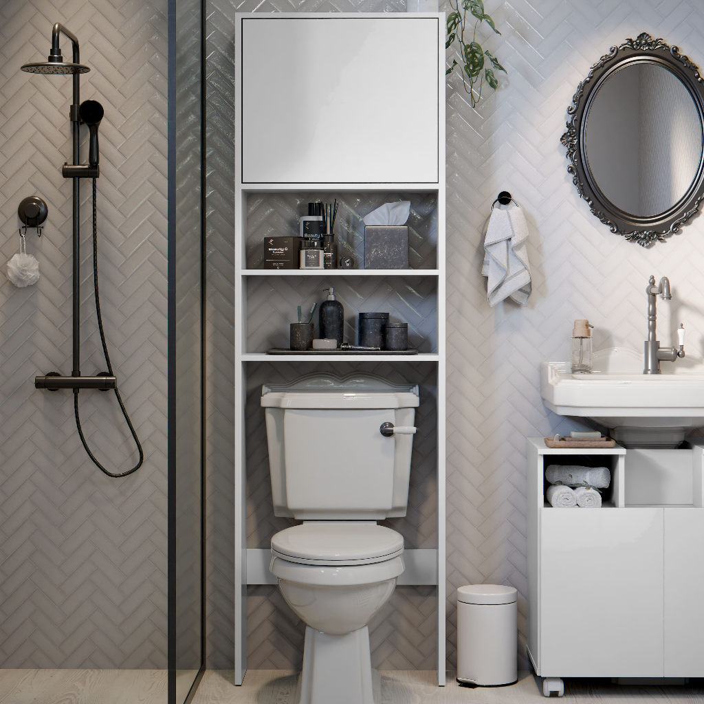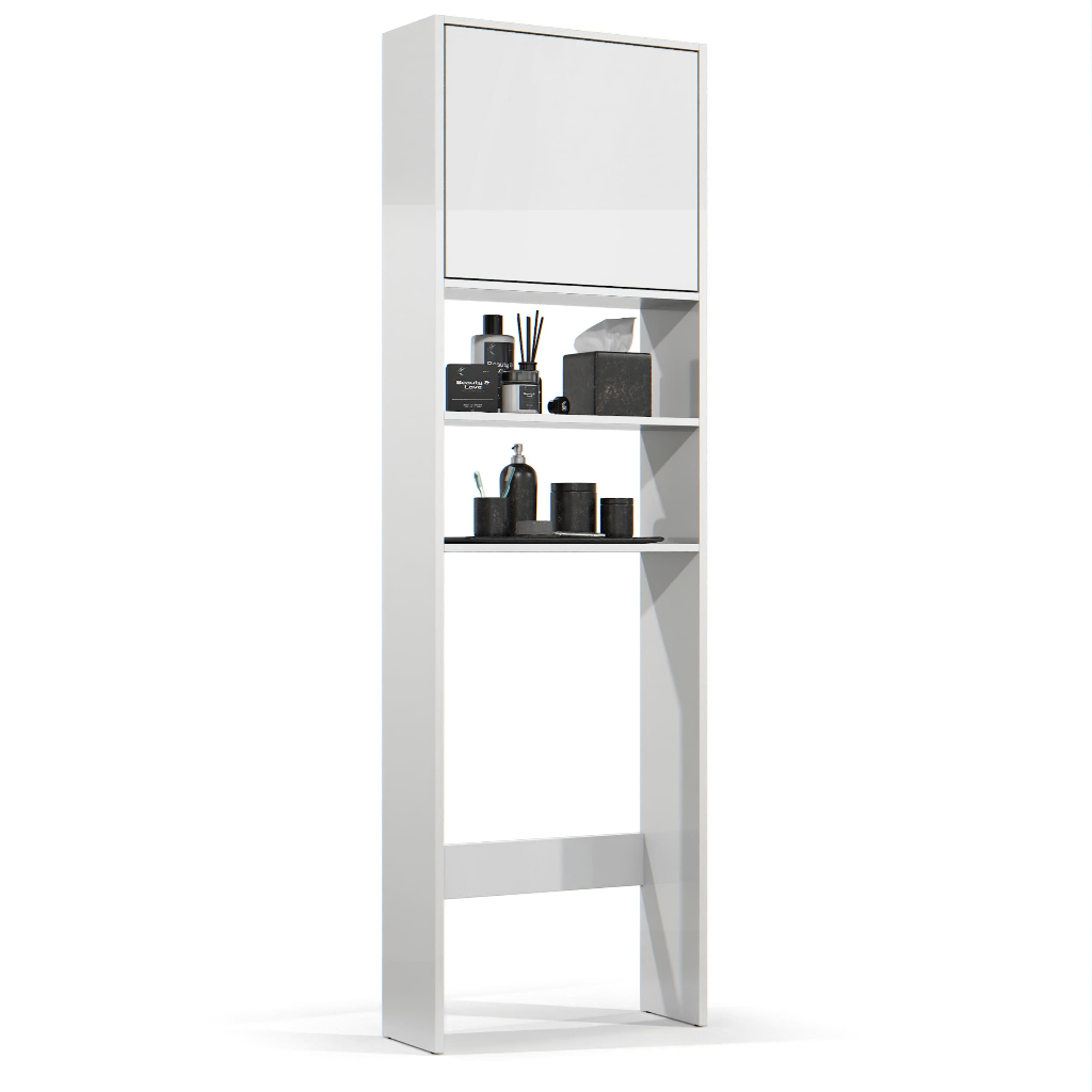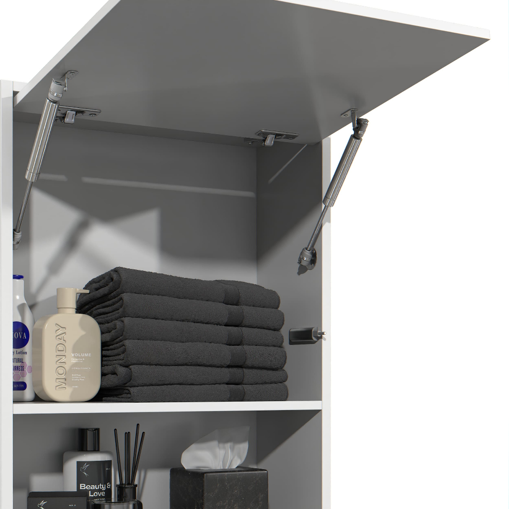 Armário Para Banheiro Torre Com Porta De Pistao E Abertura Para Vaso