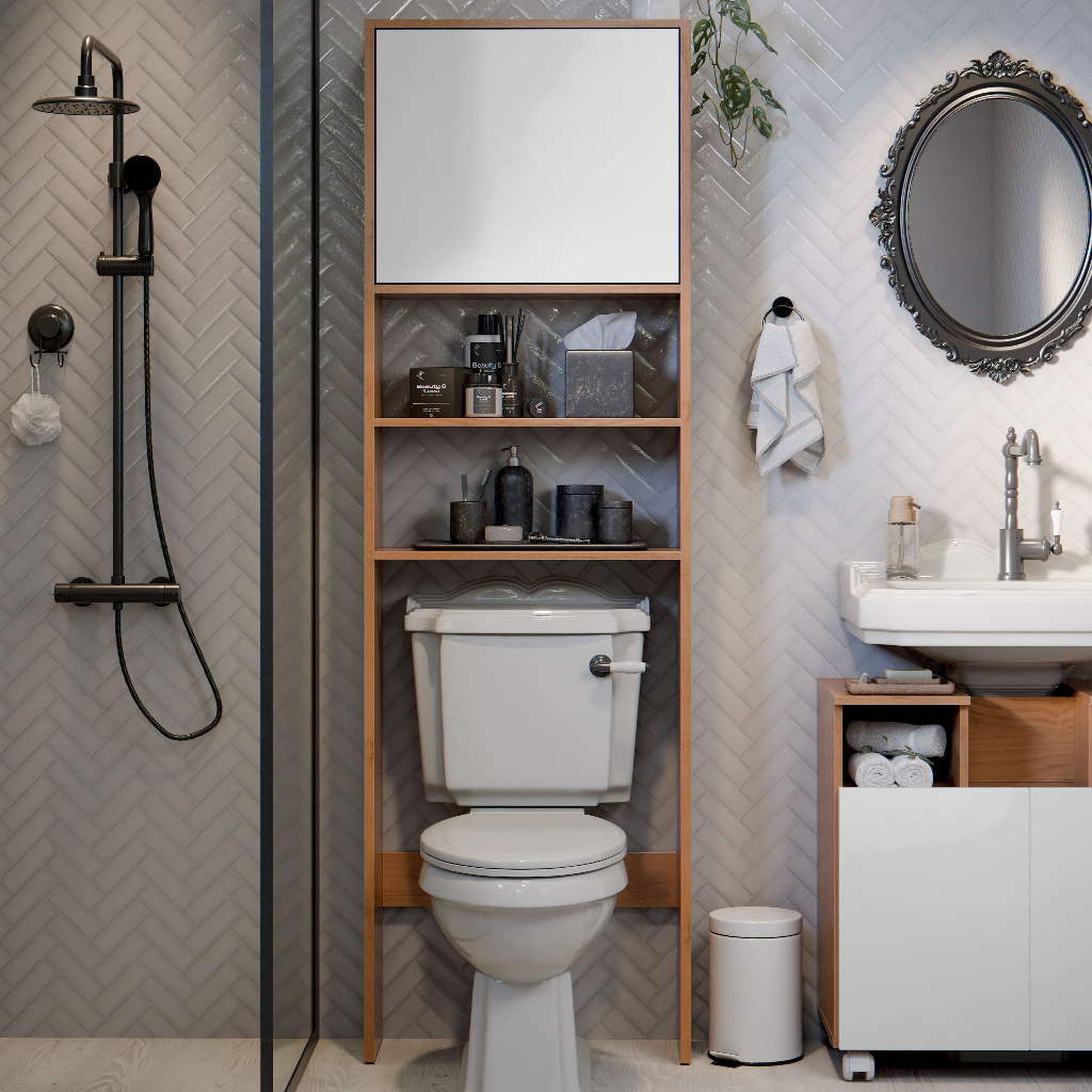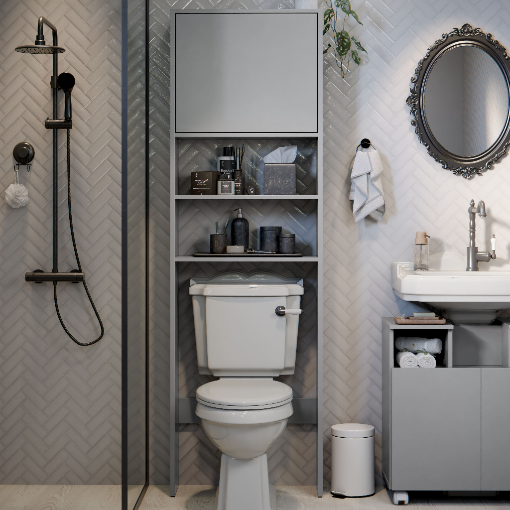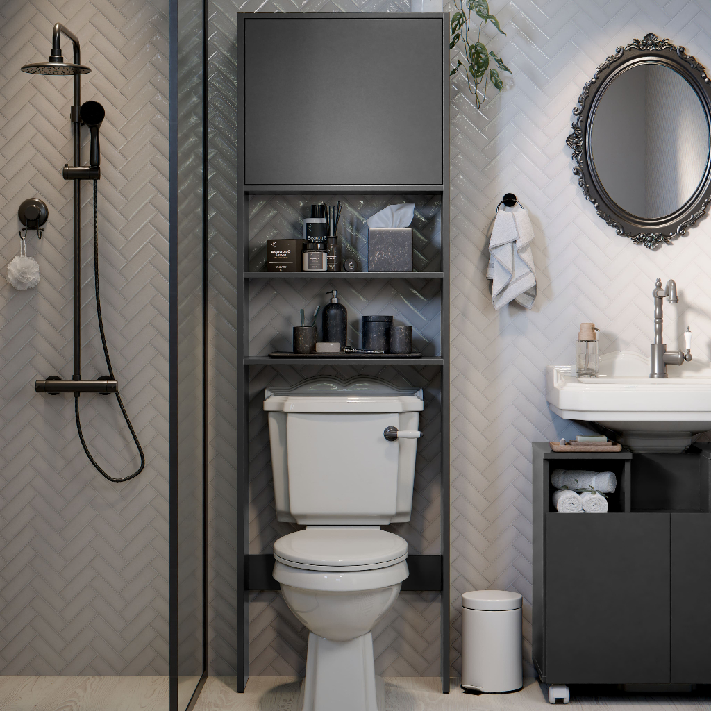 Armário Para Banheiro Torre Com Porta De Pistao E Abertura Para Vaso