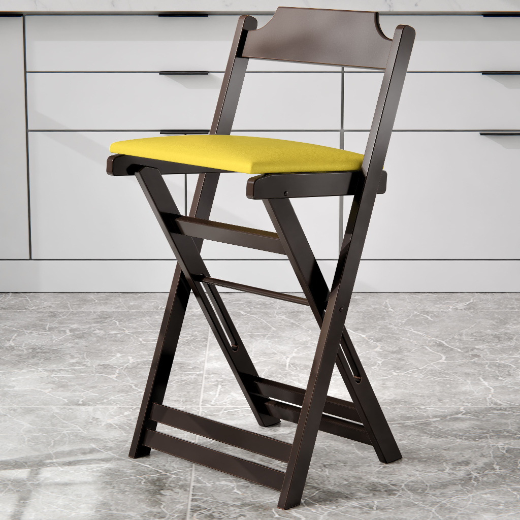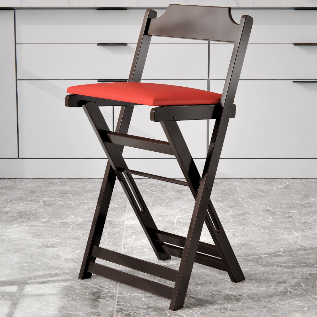 Kit 2 Banquetas Altas Dobráveis em Madeira para Balcão Bar Cozinha Área Gourmet Compactas