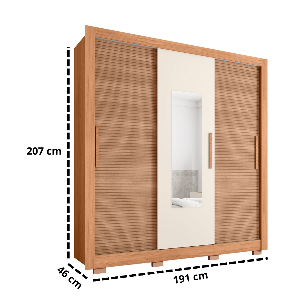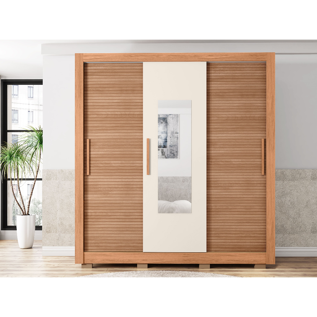 Guarda Roupas 3 Portas De Correr E 2 Gavetas E Espelho Para Quarto De Casal Estilo Roupeiro
