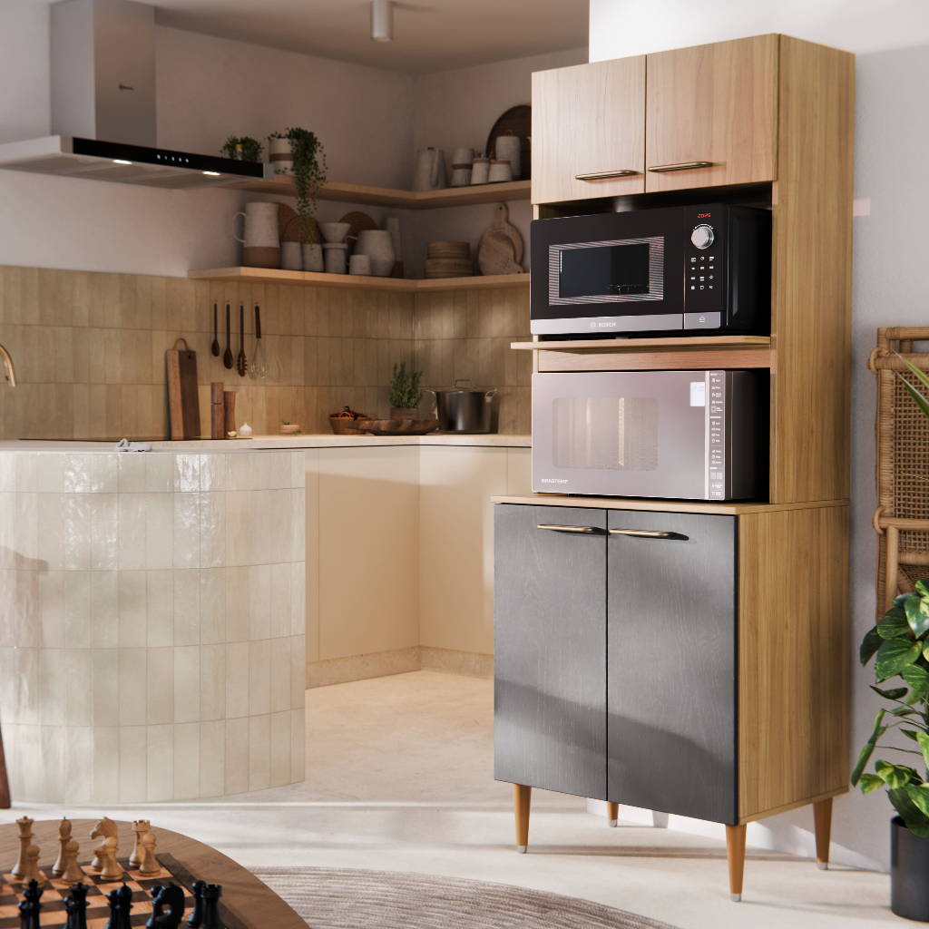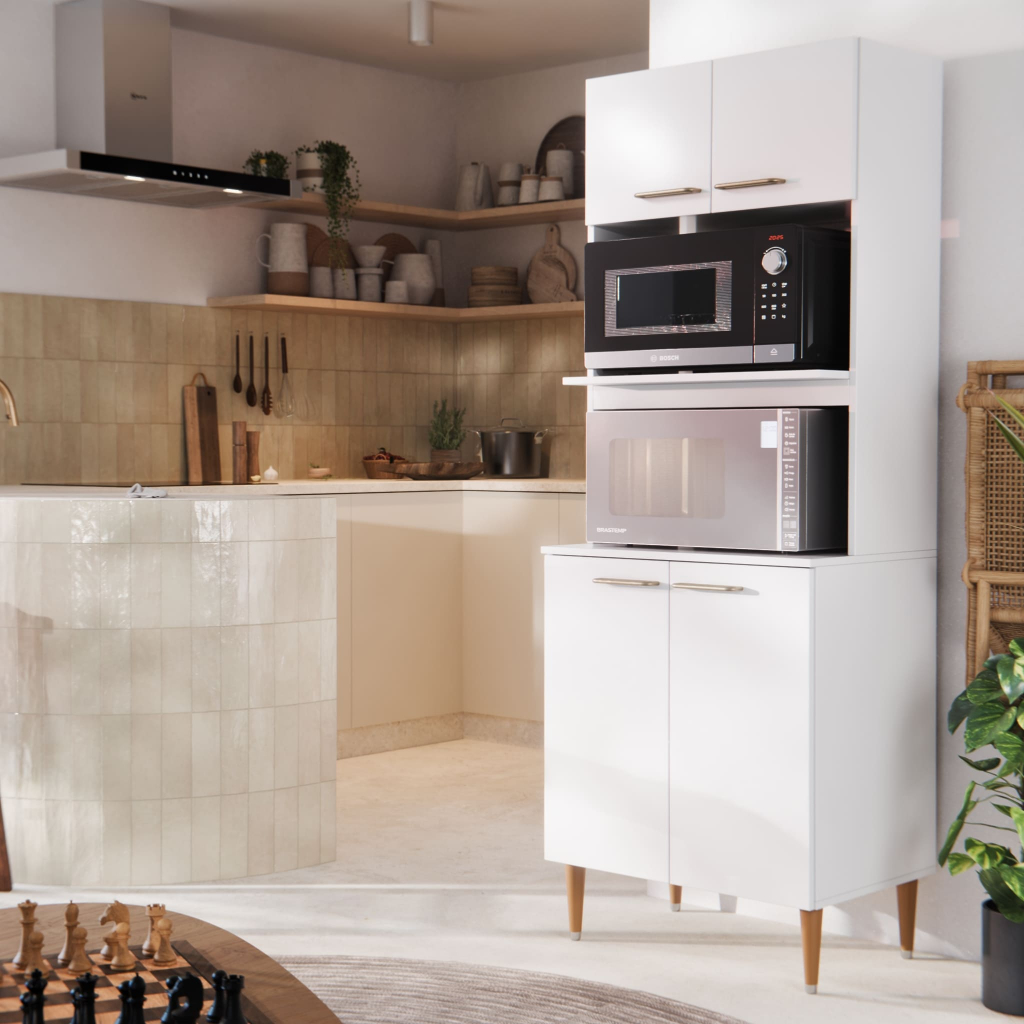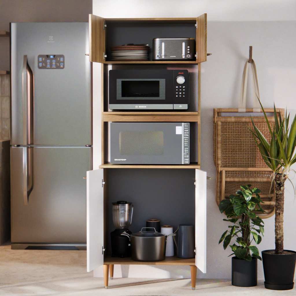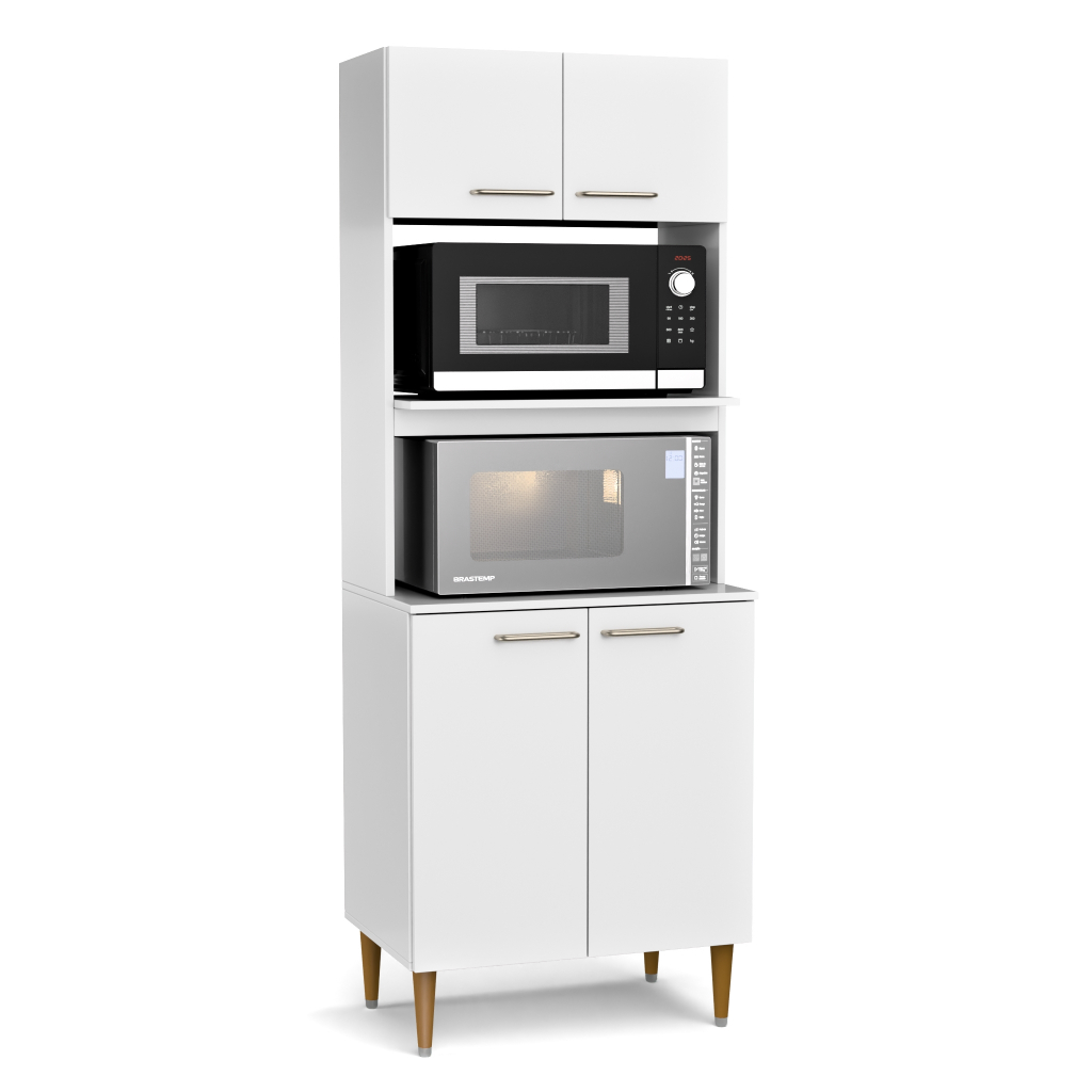 Armário Torre Quente Para Cozinha Com 4 Portas E 2 Nichos Para Forno e Micro-ondas Organizador