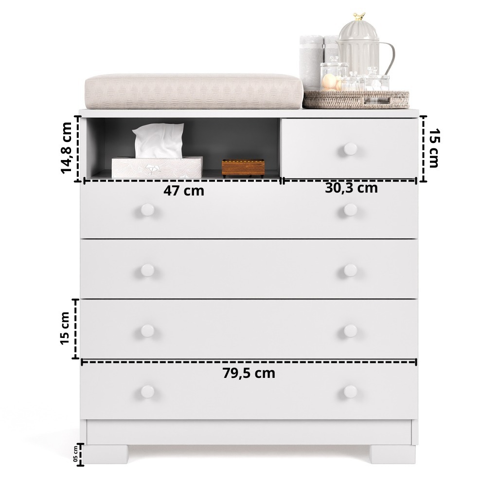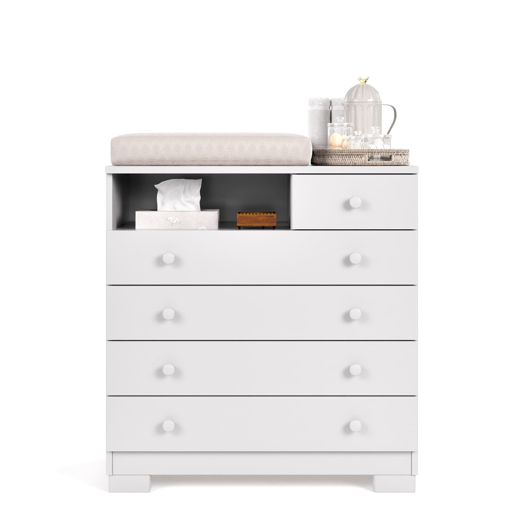 Cômoda Infantil Amora MDF/MDP 5 Gavetas com Nicho e Trocador para Quarto de Bebê