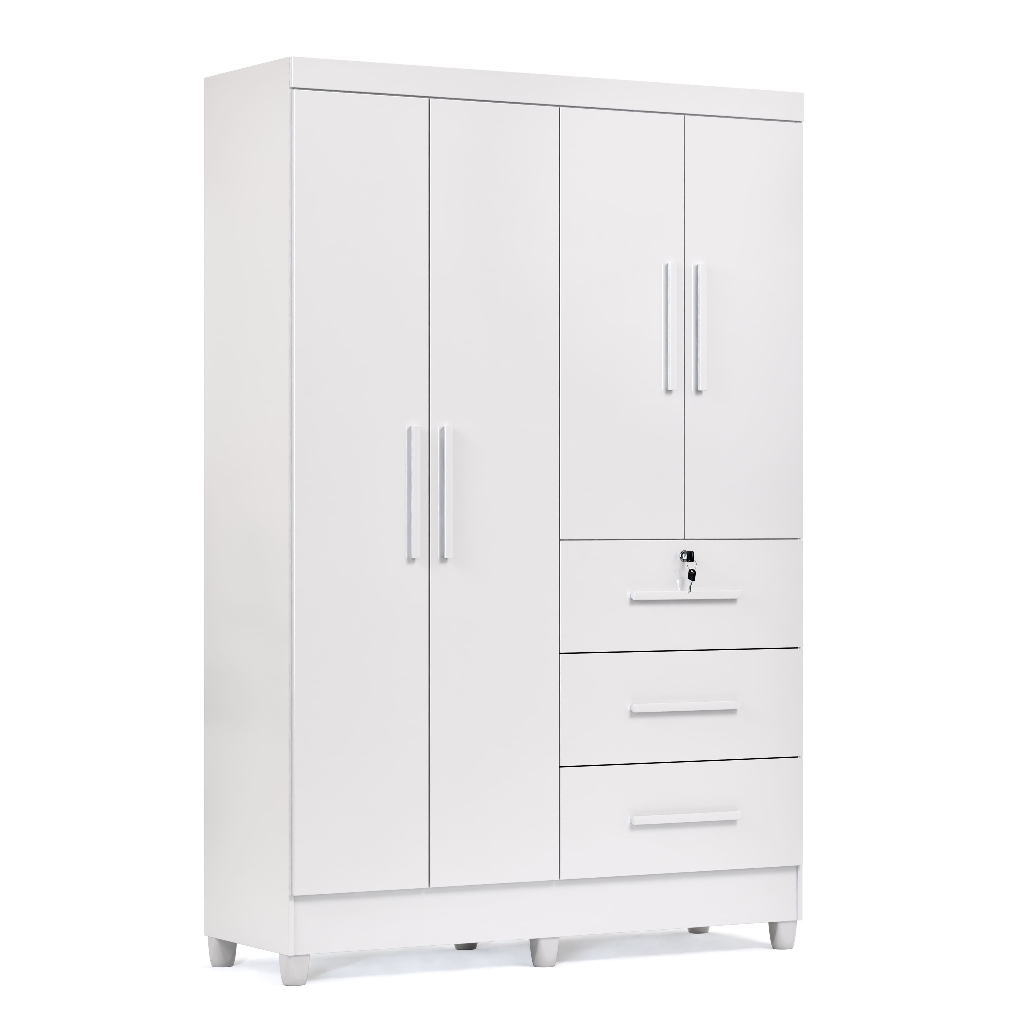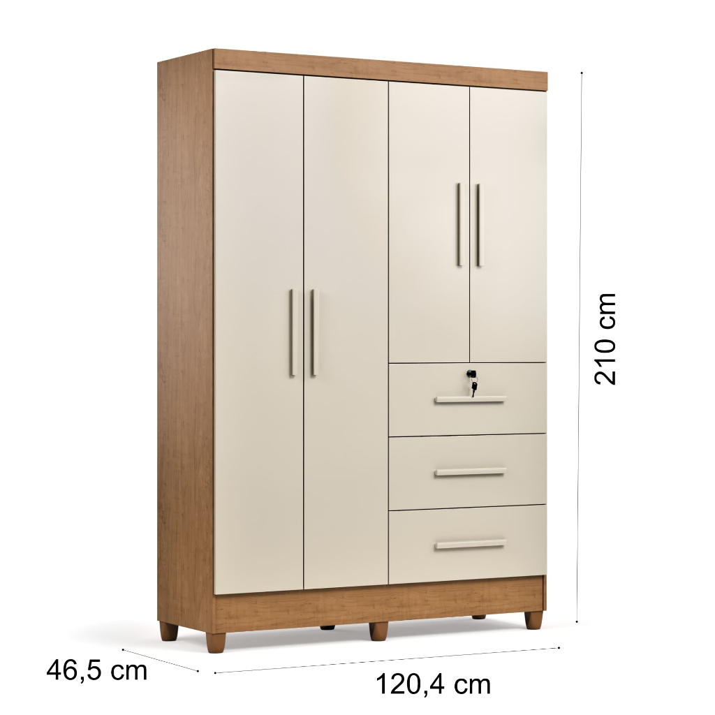 Guarda-Roupa Casal 4 Portas 3 Gavetas com Chave Mumbai MDP Nature/Off White ou Branco