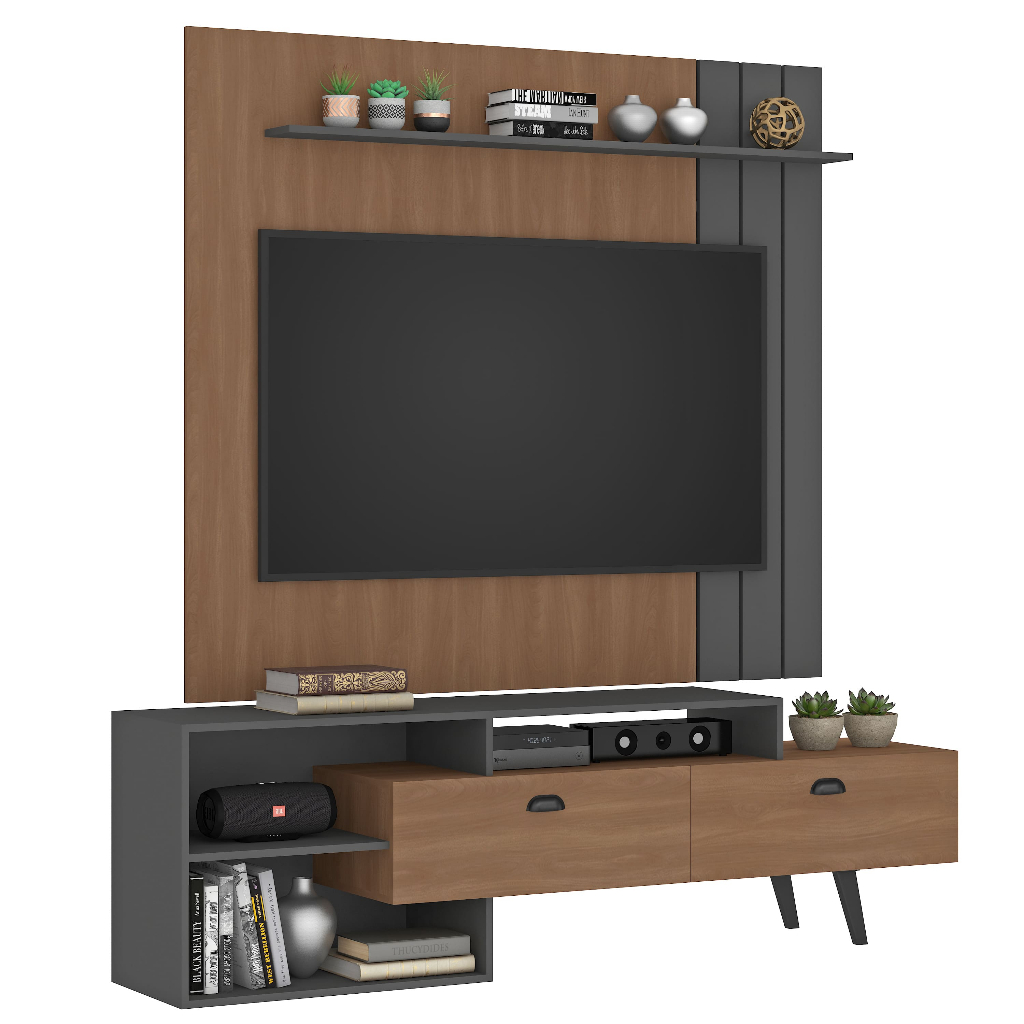 Painel Com Rack Para Tv De Até 60 Polegadas Com Nicho E 2 Portas