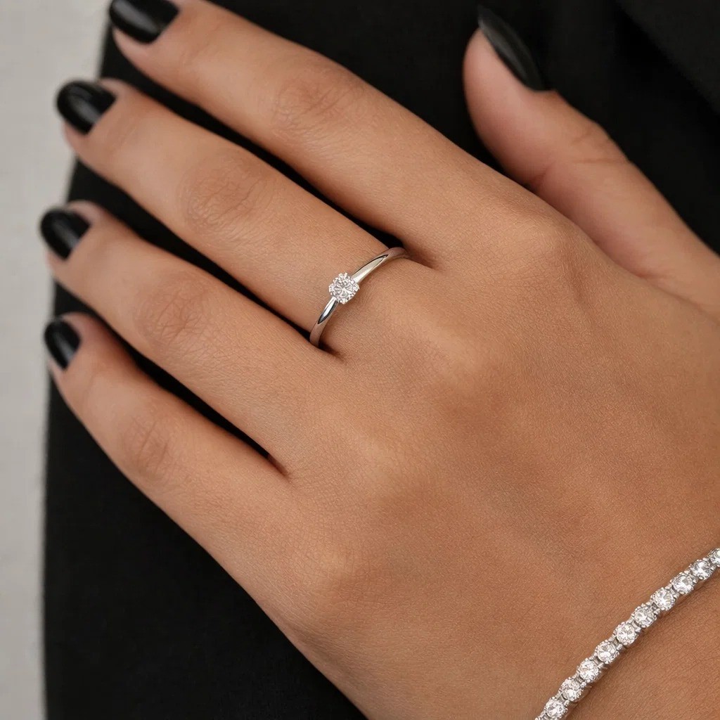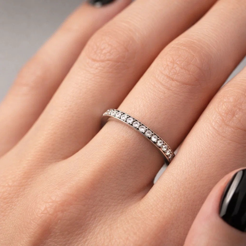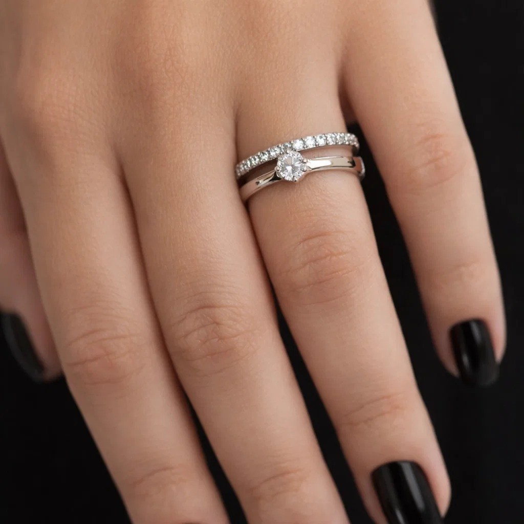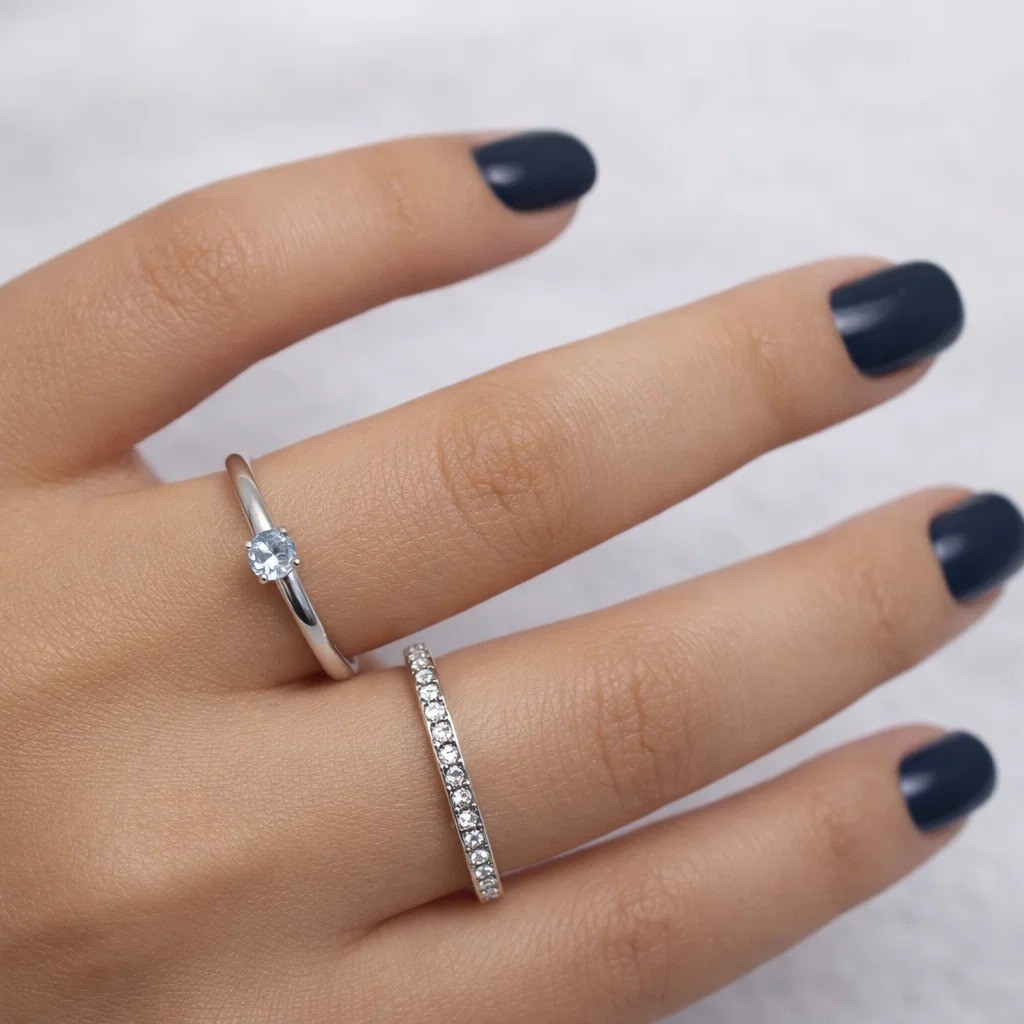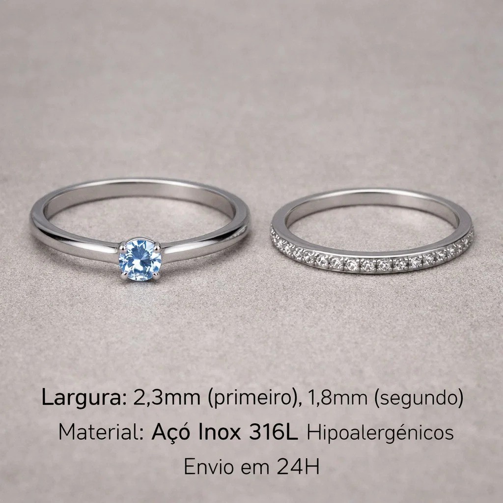 Kit 2 Anéis Prata Femininos Hipoalergênicos com Pedrinhas Sortidas e Pedras Brilhantes