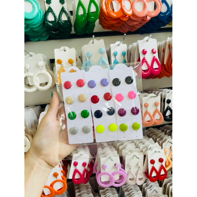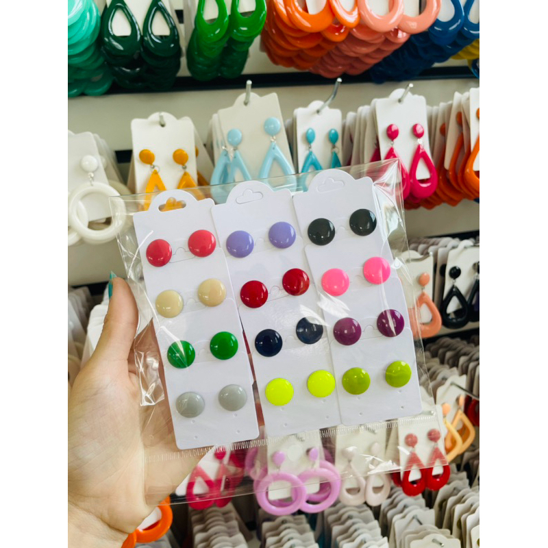 Kit 12 pares Brincos botão 1 CM resina coloridos sortidos femininos