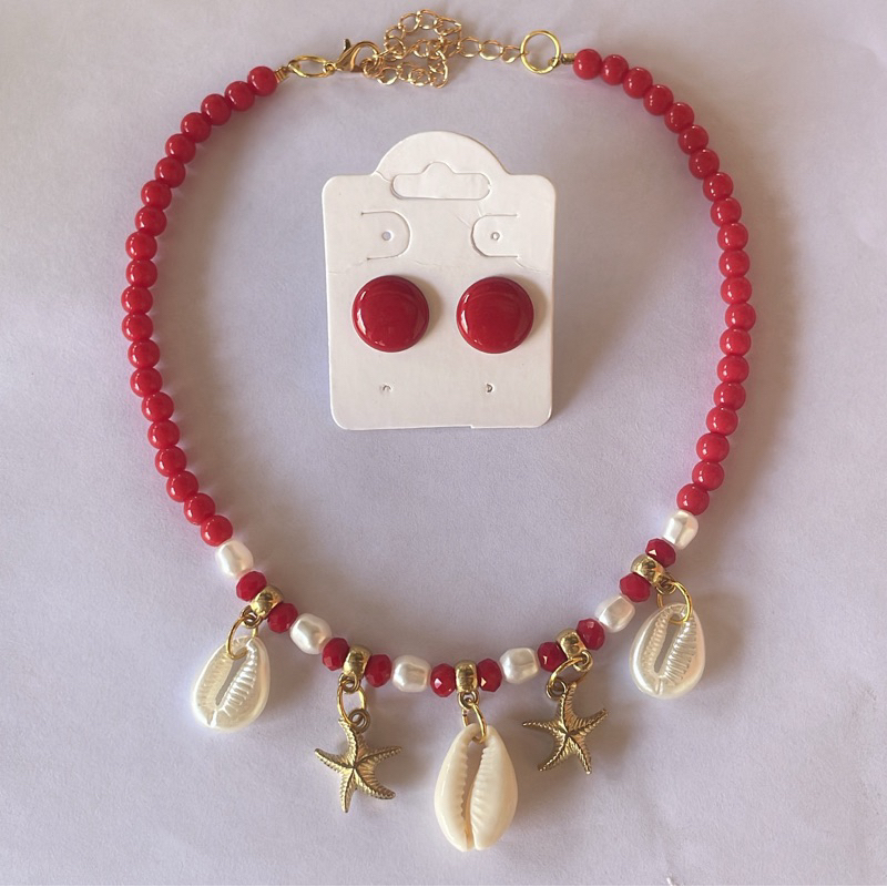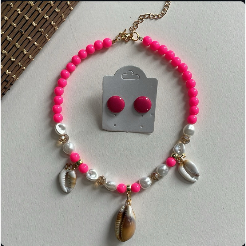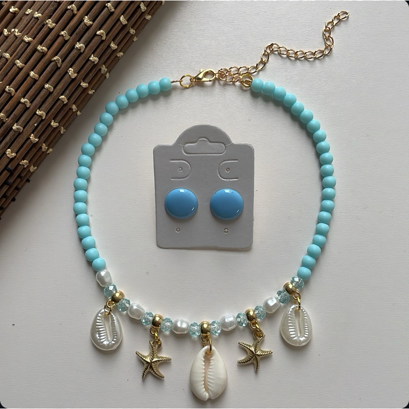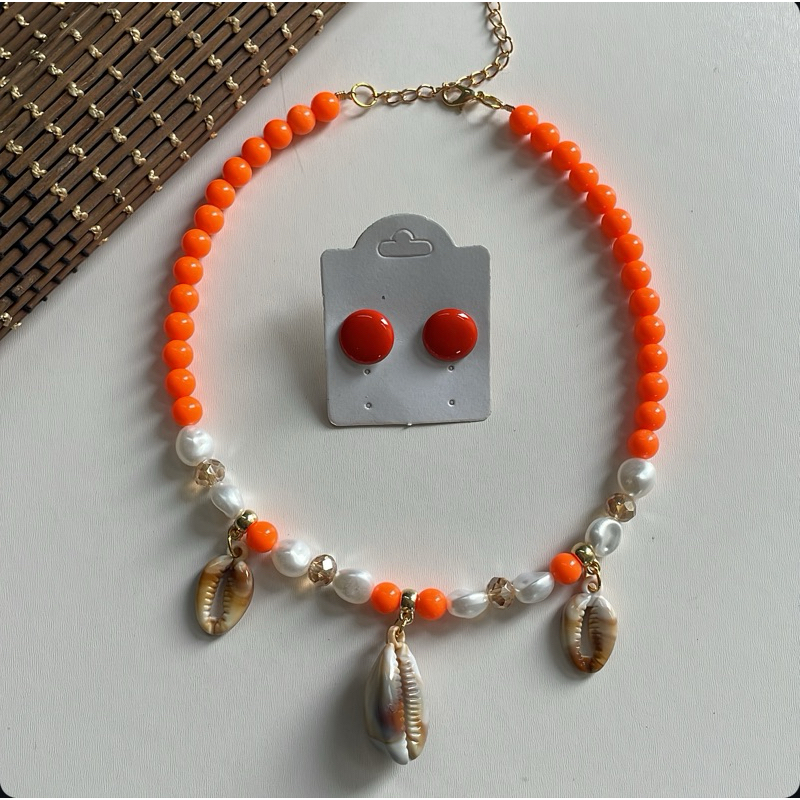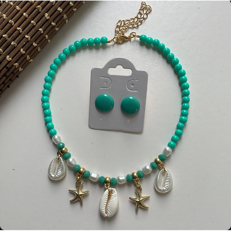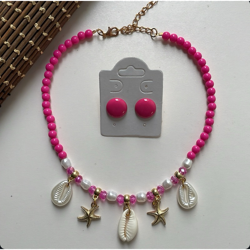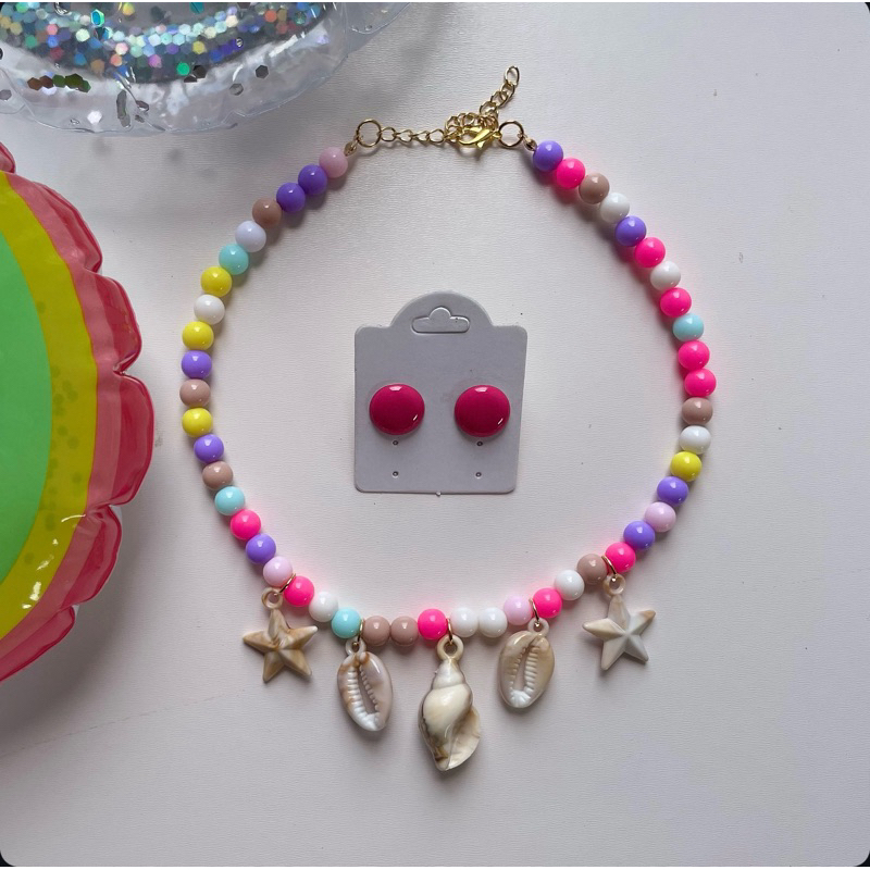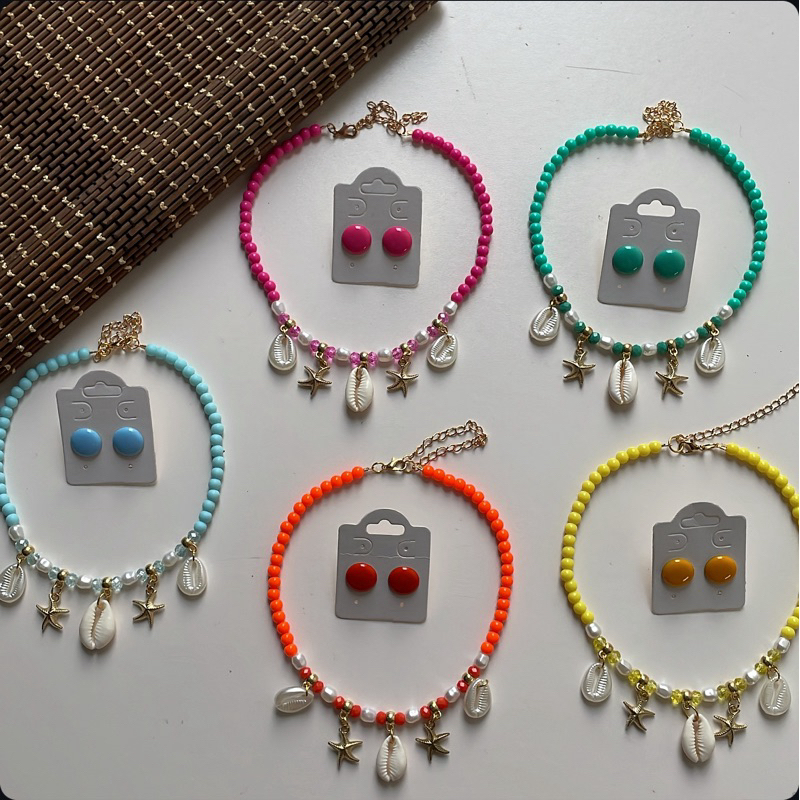 Kit colar moda verão praia + brinco botão resina 1 cm
