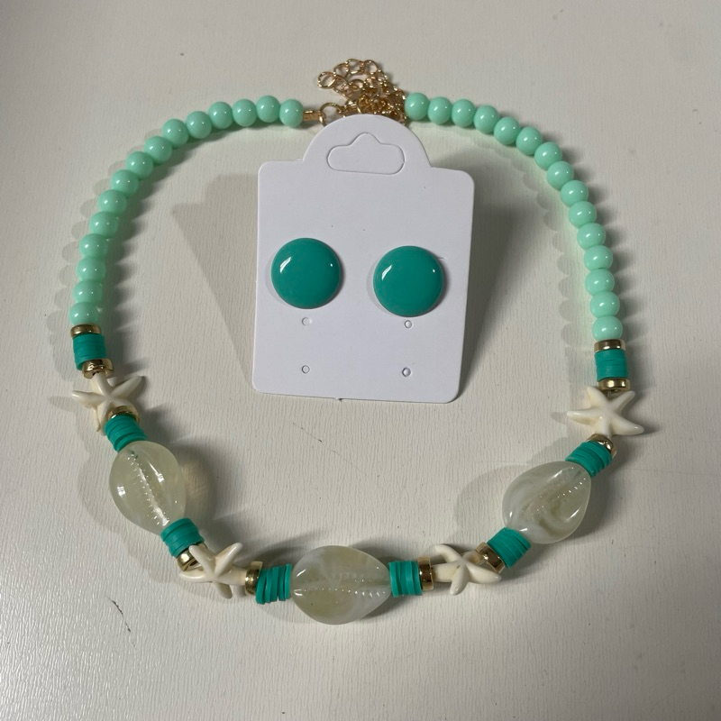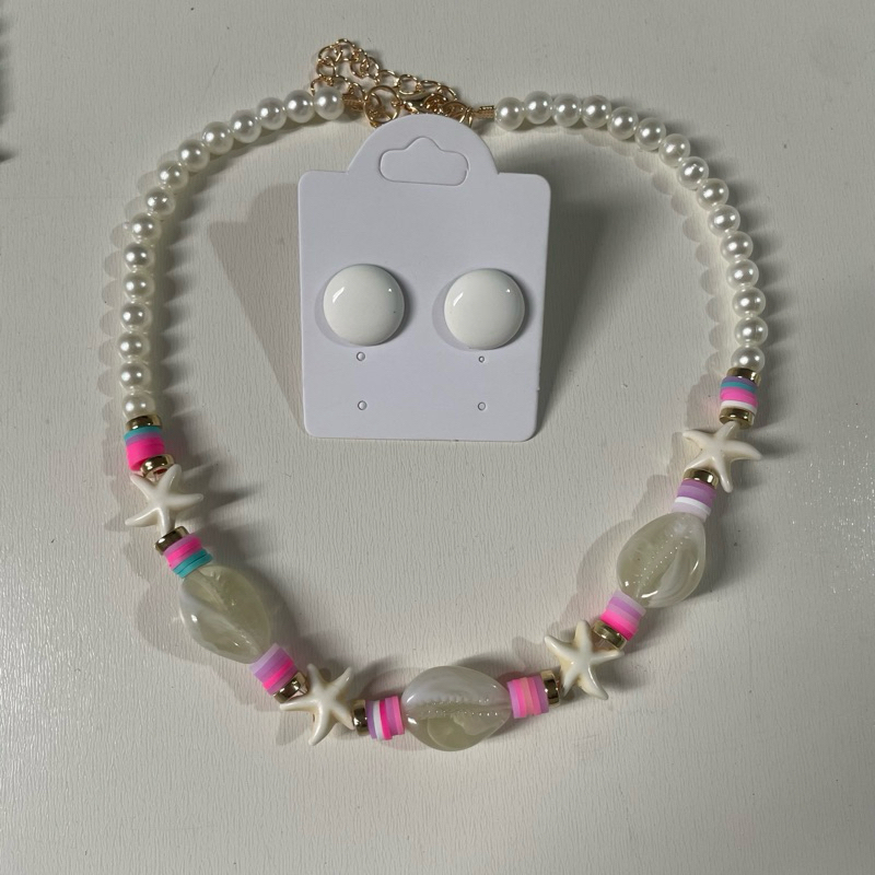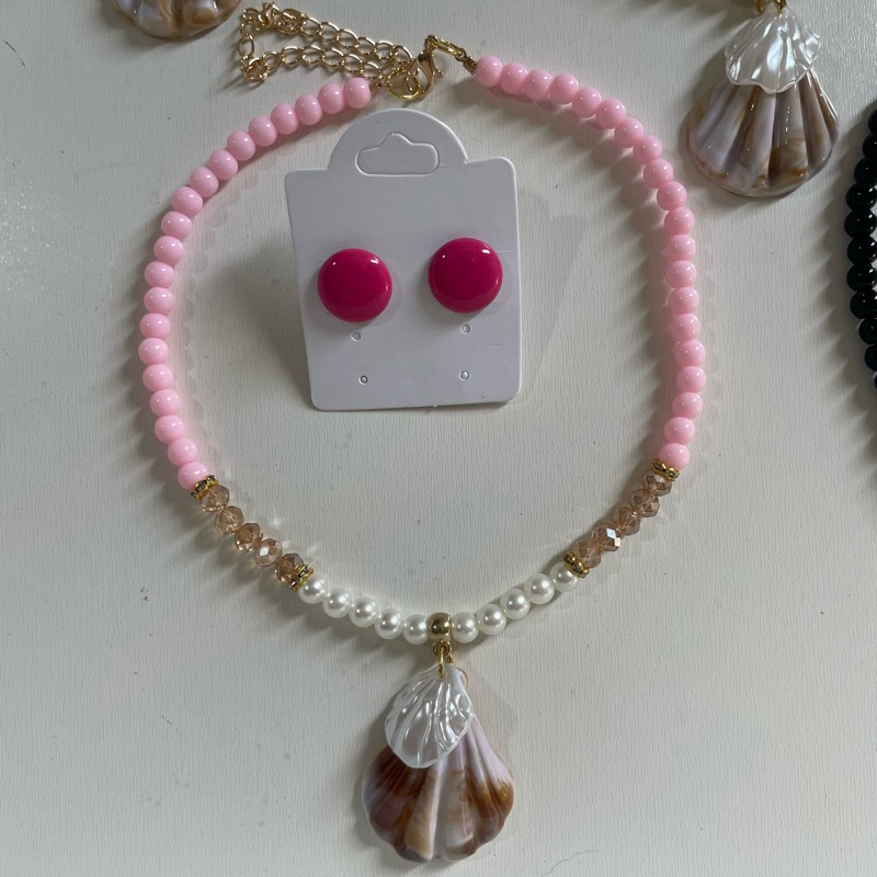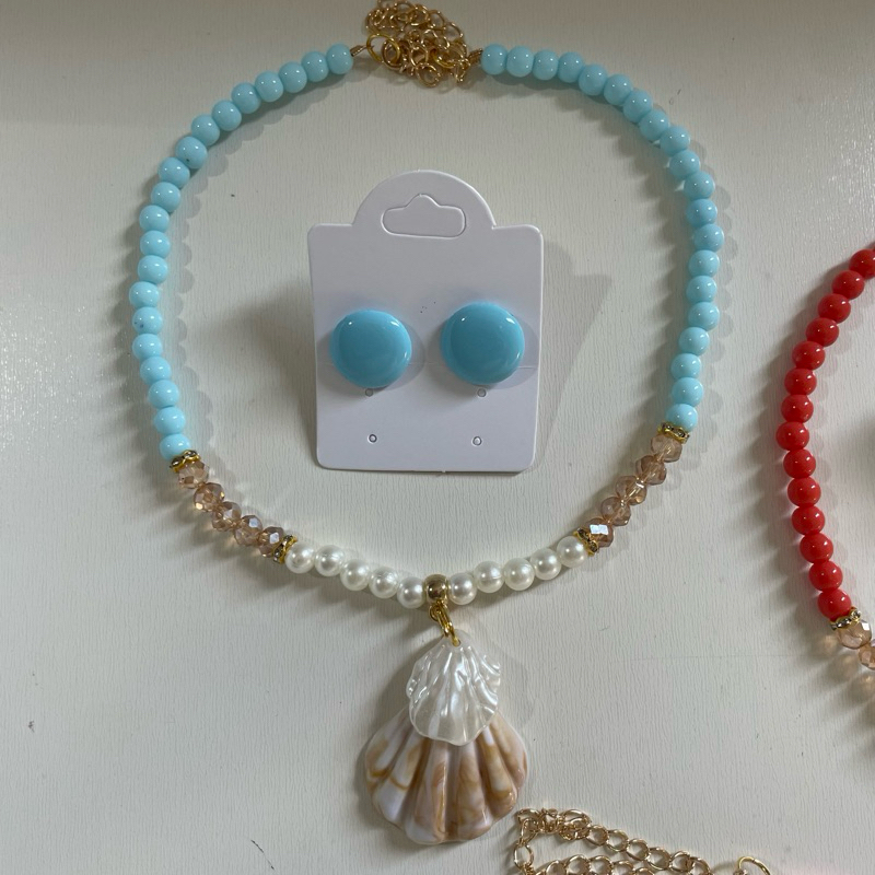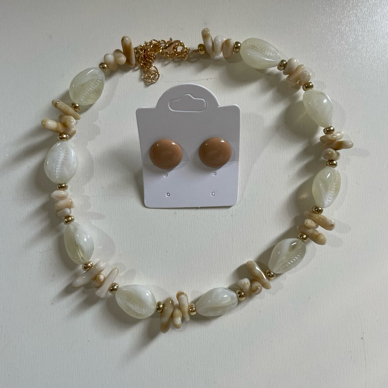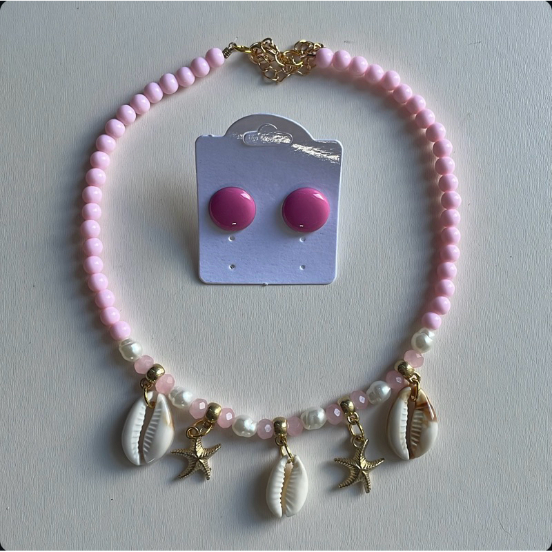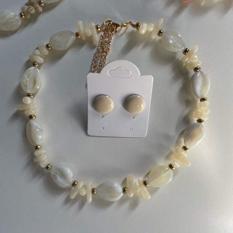 Kit colar moda verão praia + brinco botão resina 1 cm