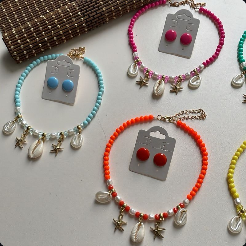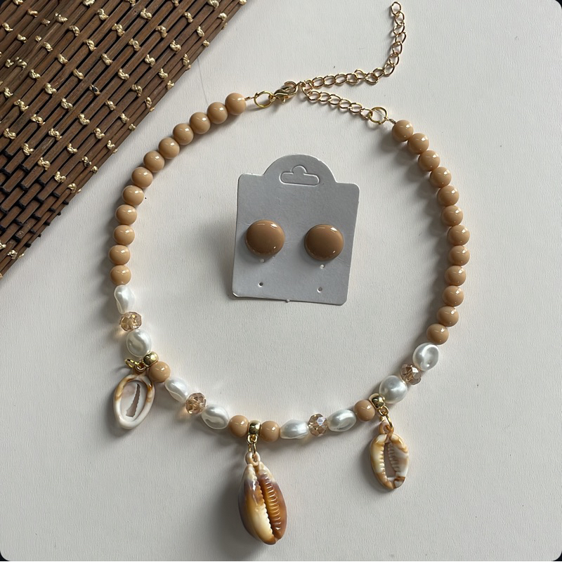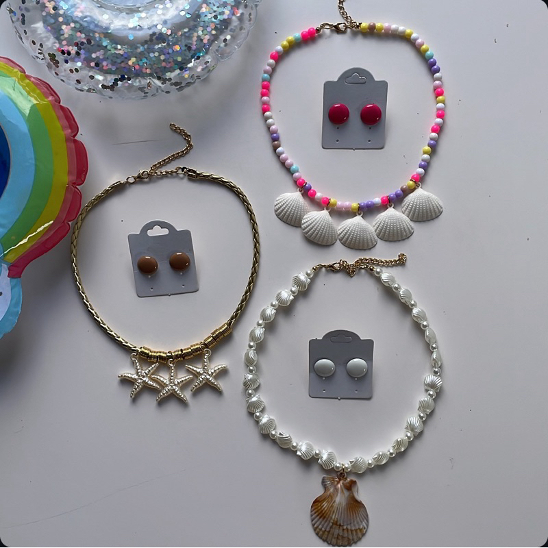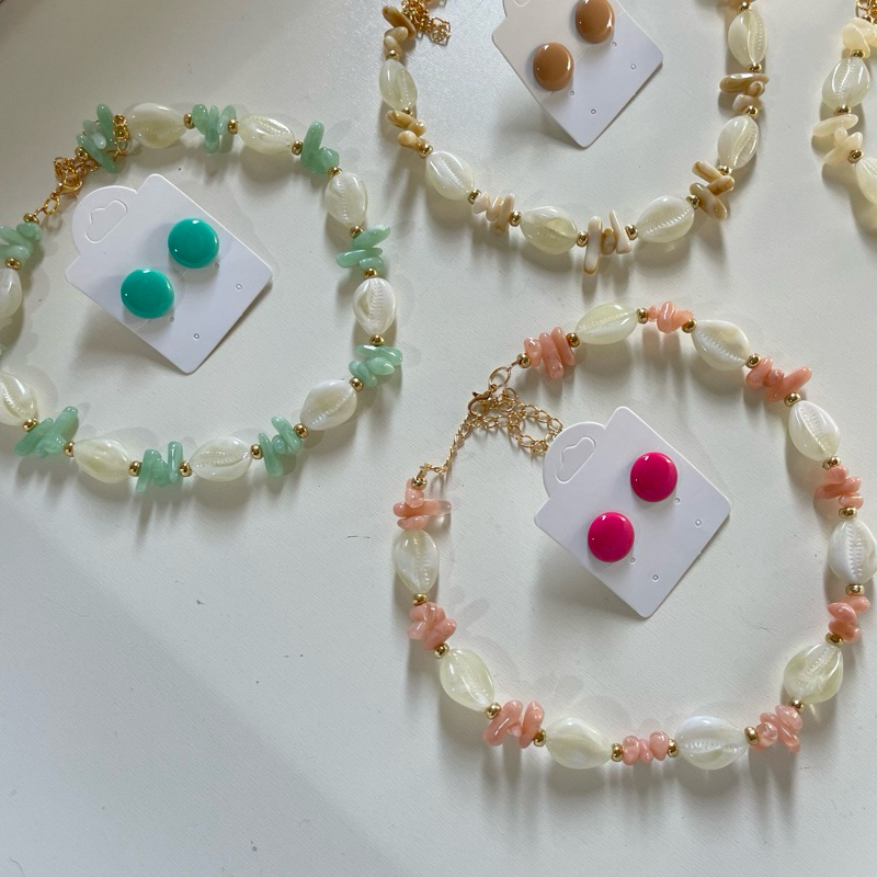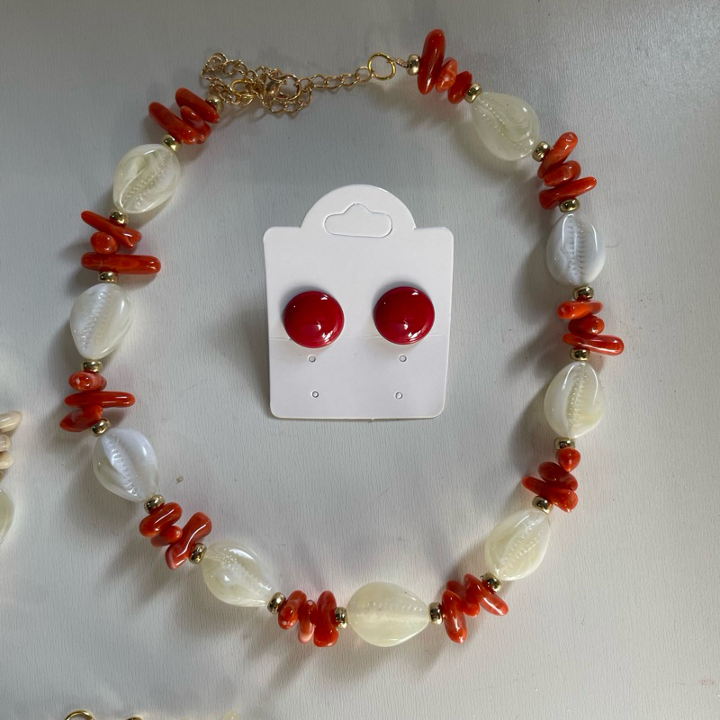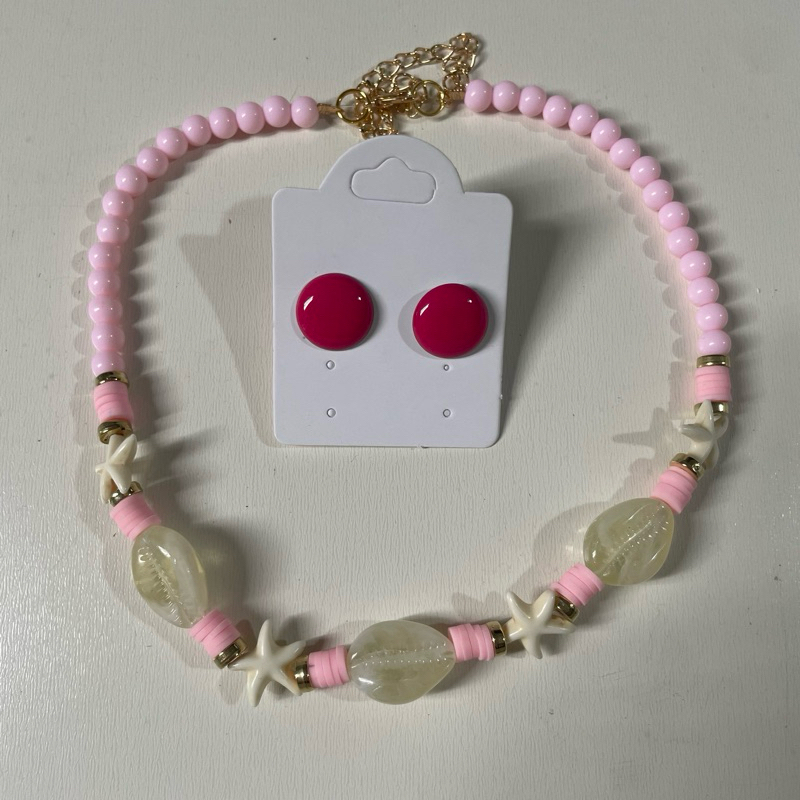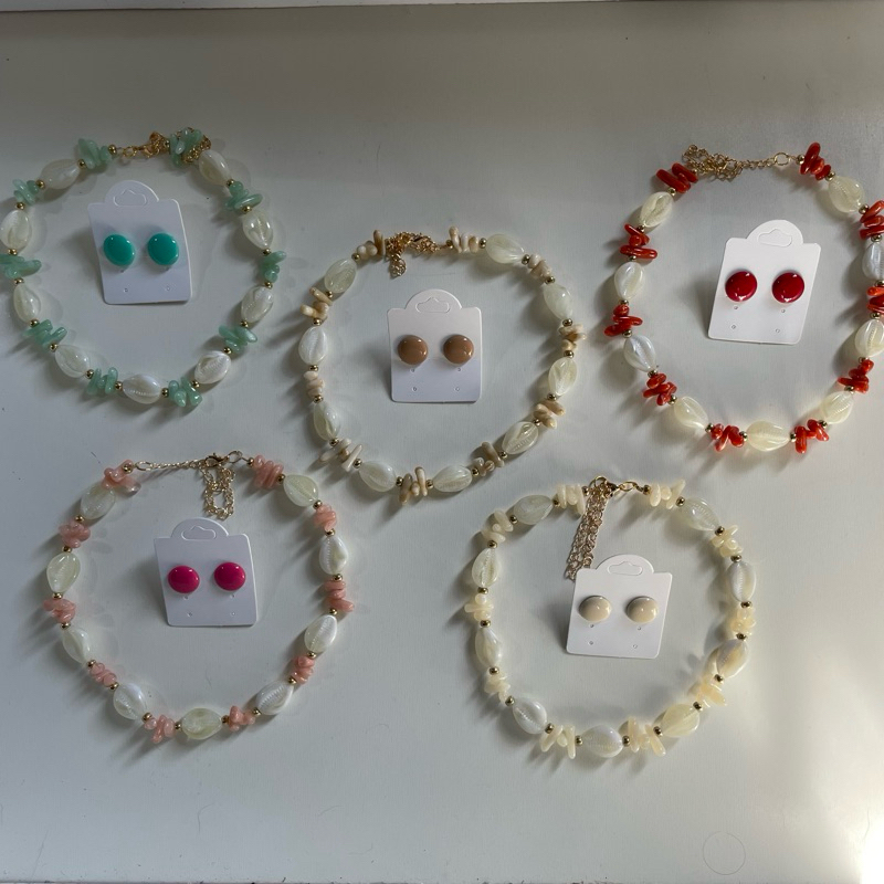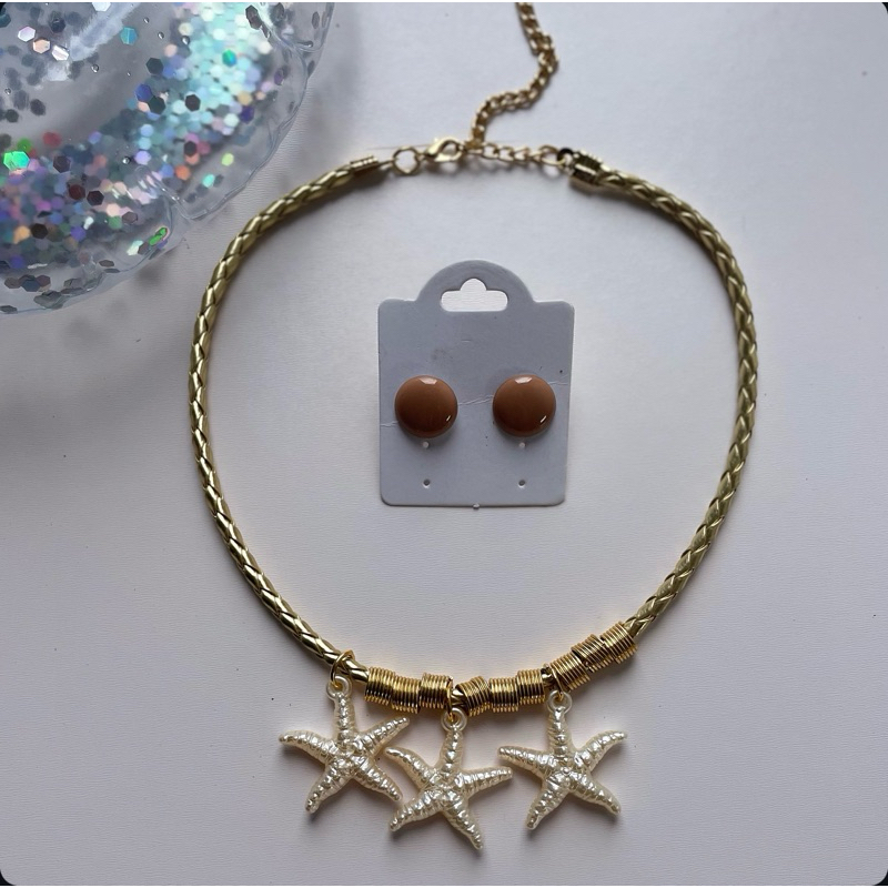 Kit colar moda verão praia + brinco botão resina 1 cm