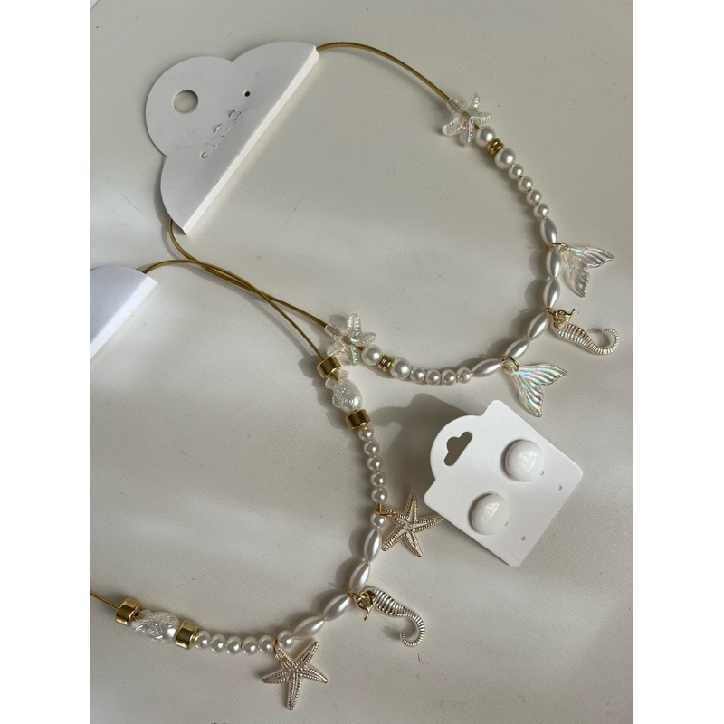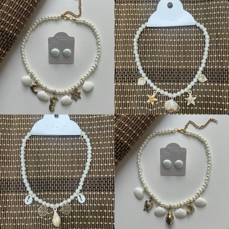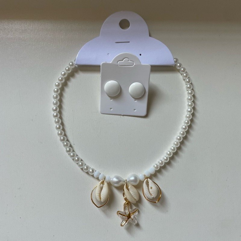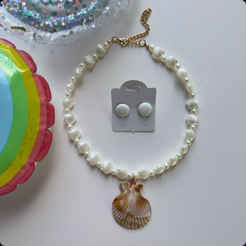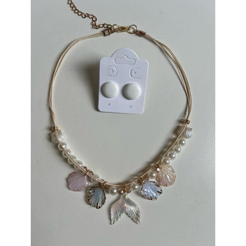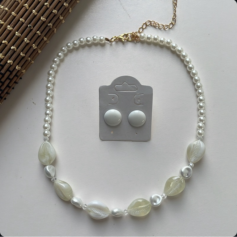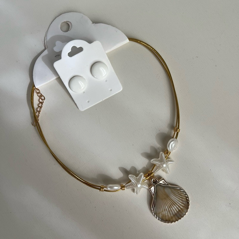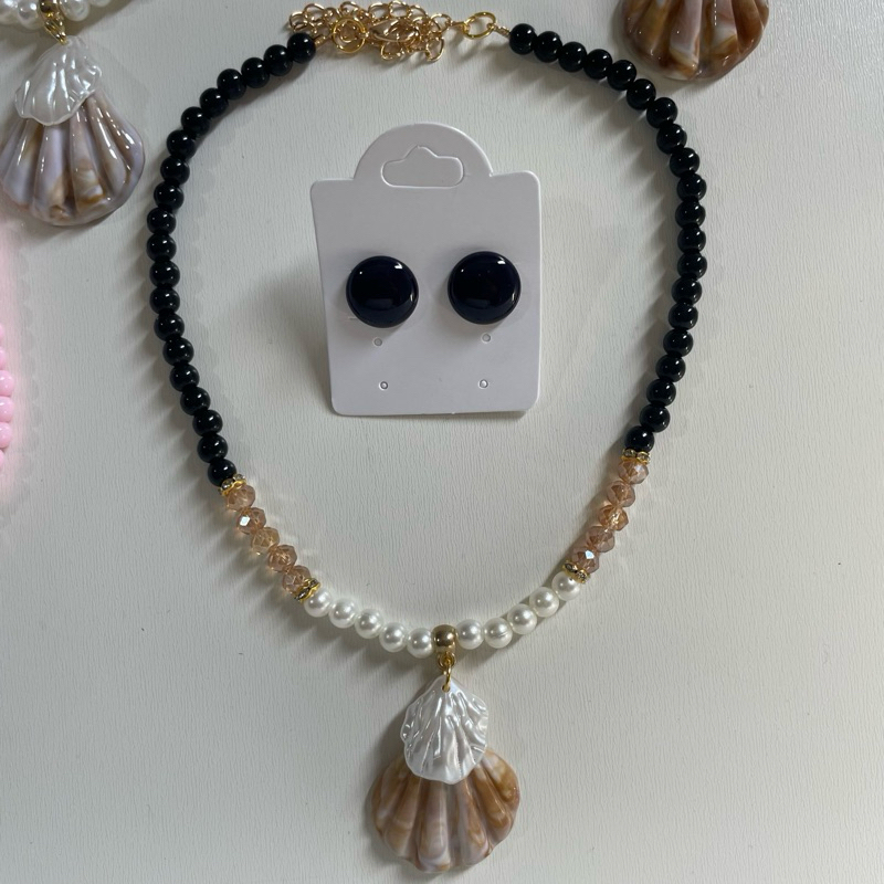 Kit colar moda verão praia + brinco botão resina 1 cm