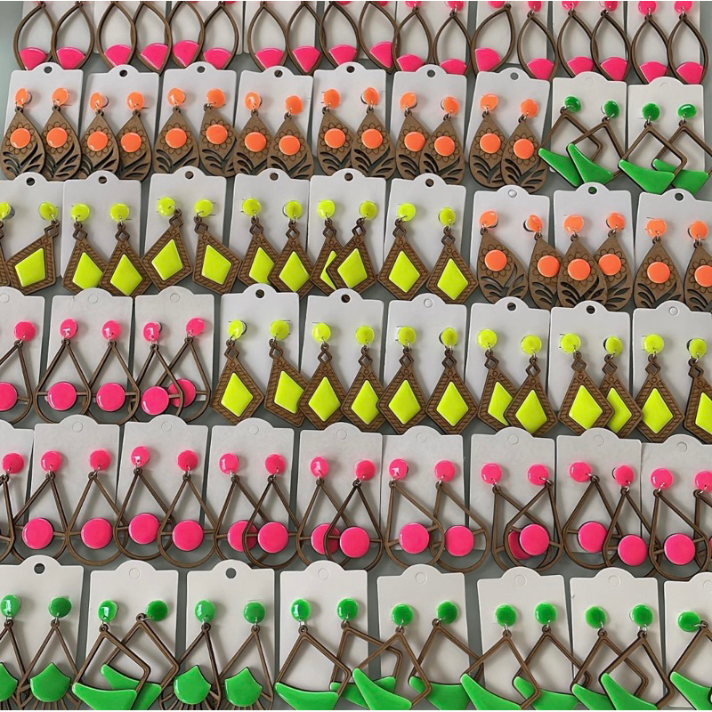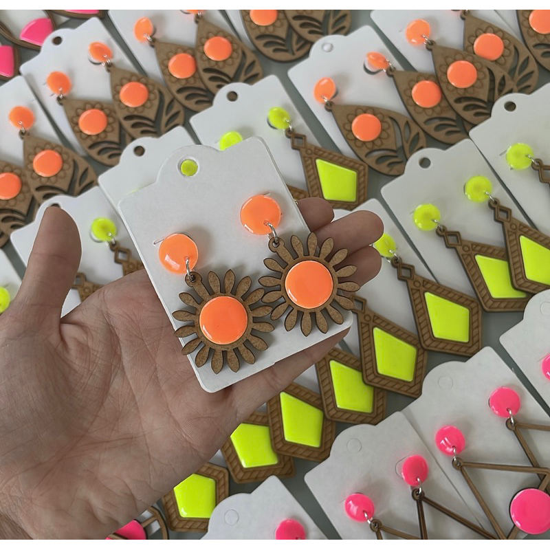 Kit 5 Brincos MDF com resina NEON sortidos coloridos femininos