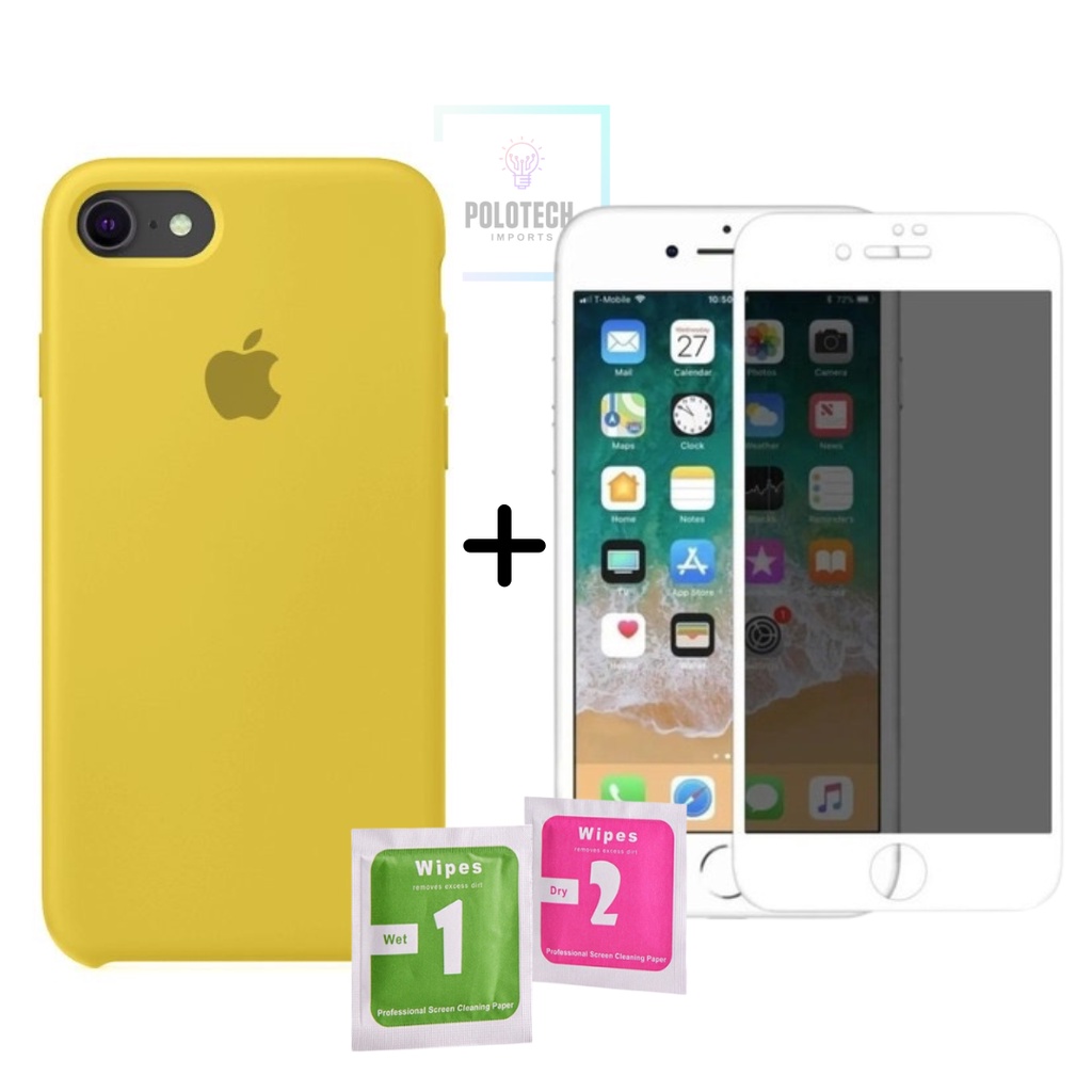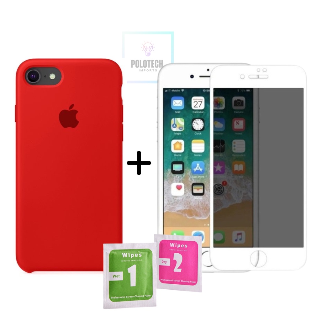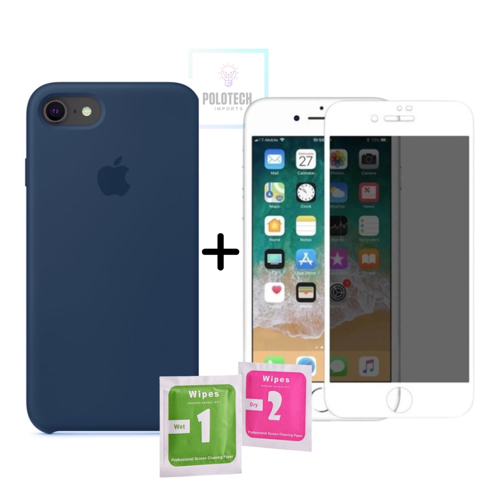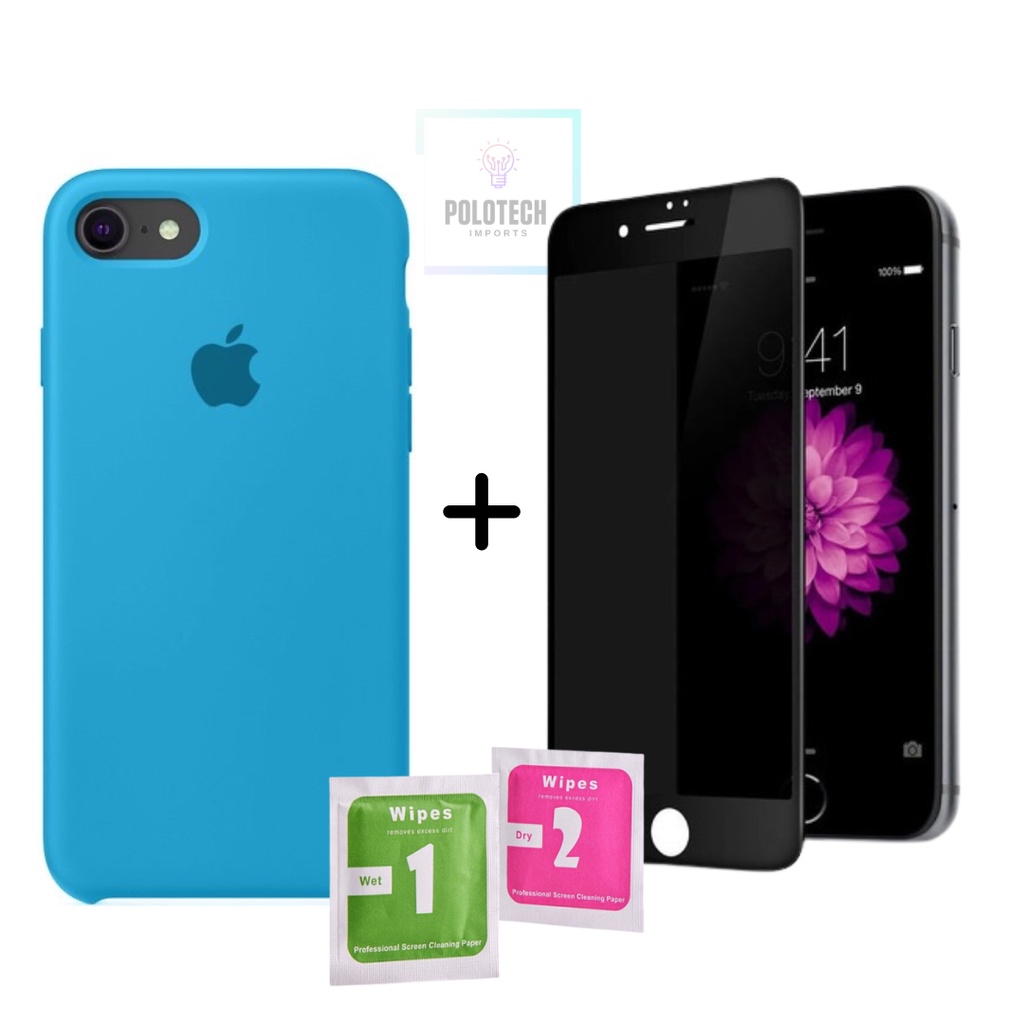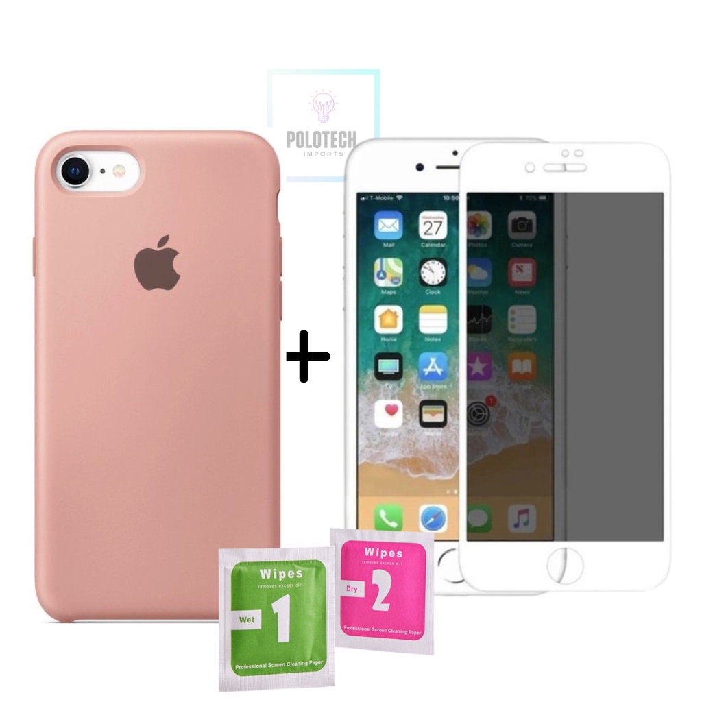 Kit Capinha IPhone 6/6s Premium Silicone Com Logo + Película Privacidade - Lançamento 2026