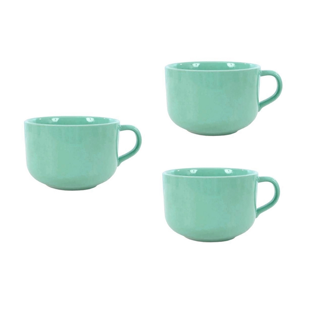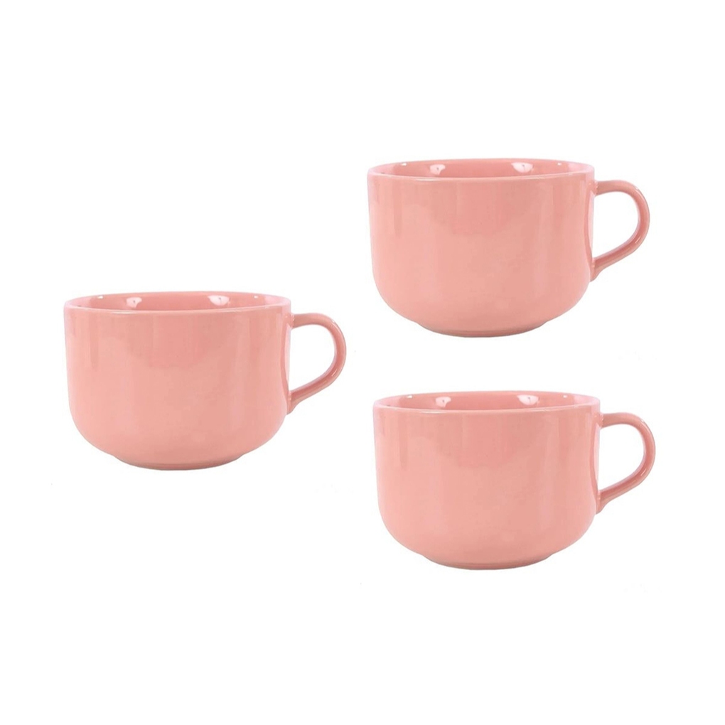 Conjunto 03 Canecas De Cerâmica Grande Para Café Sopas Caldos Cereal Sobremesas 450ml Color Presente