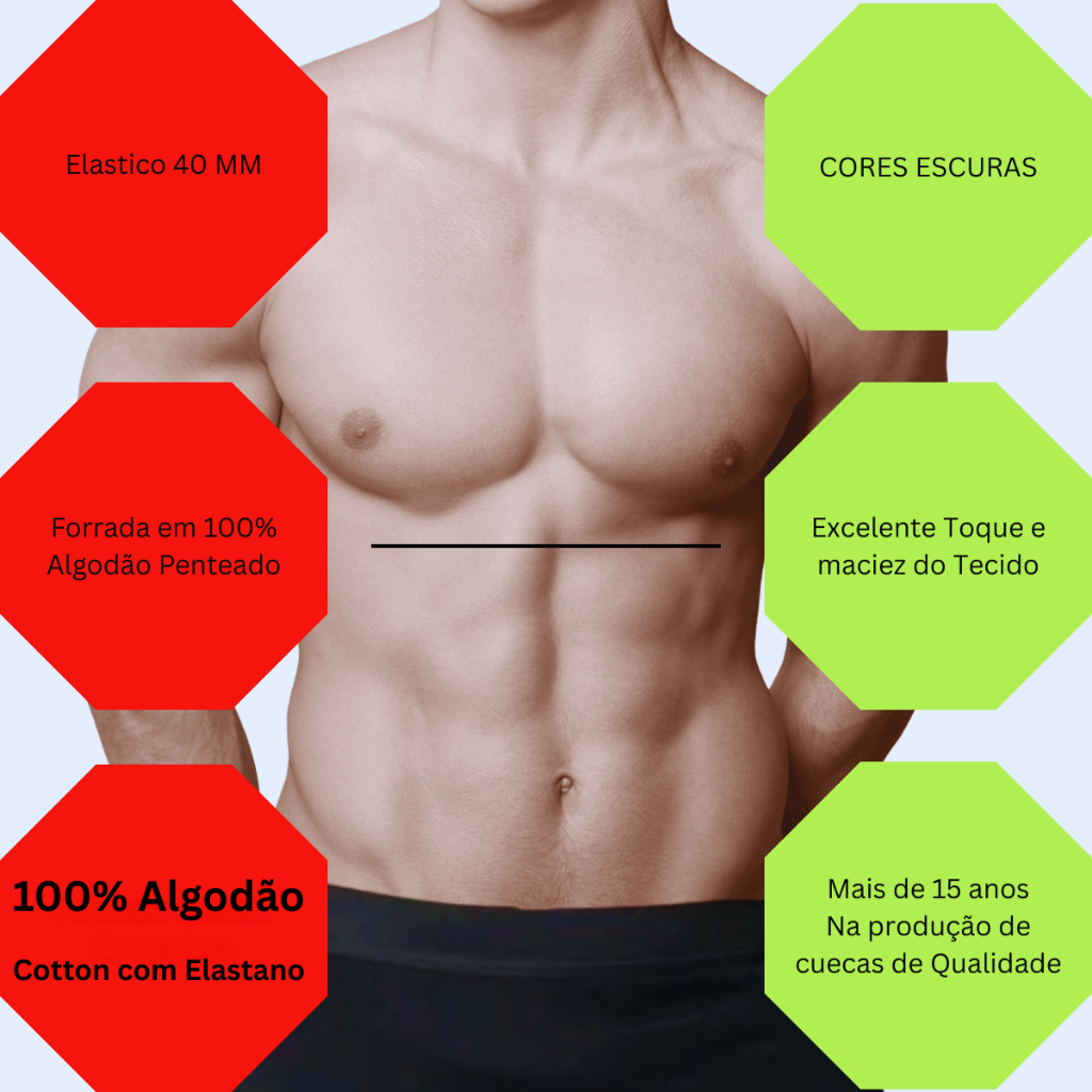 Kit Com 10 Cuecas Algodão Boxer Cotton Adulto Fábrica cores escuras forrada