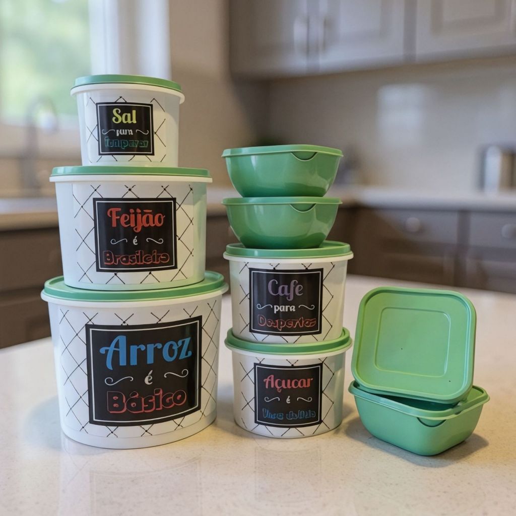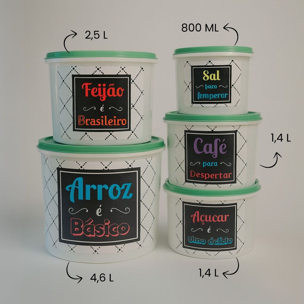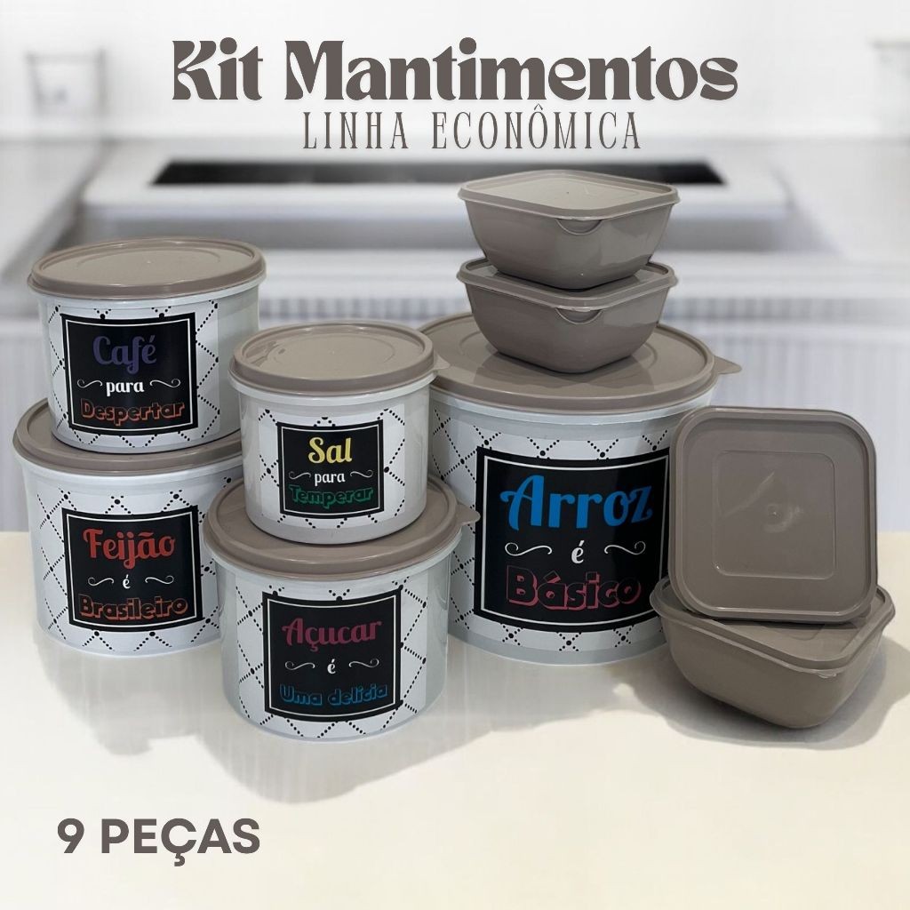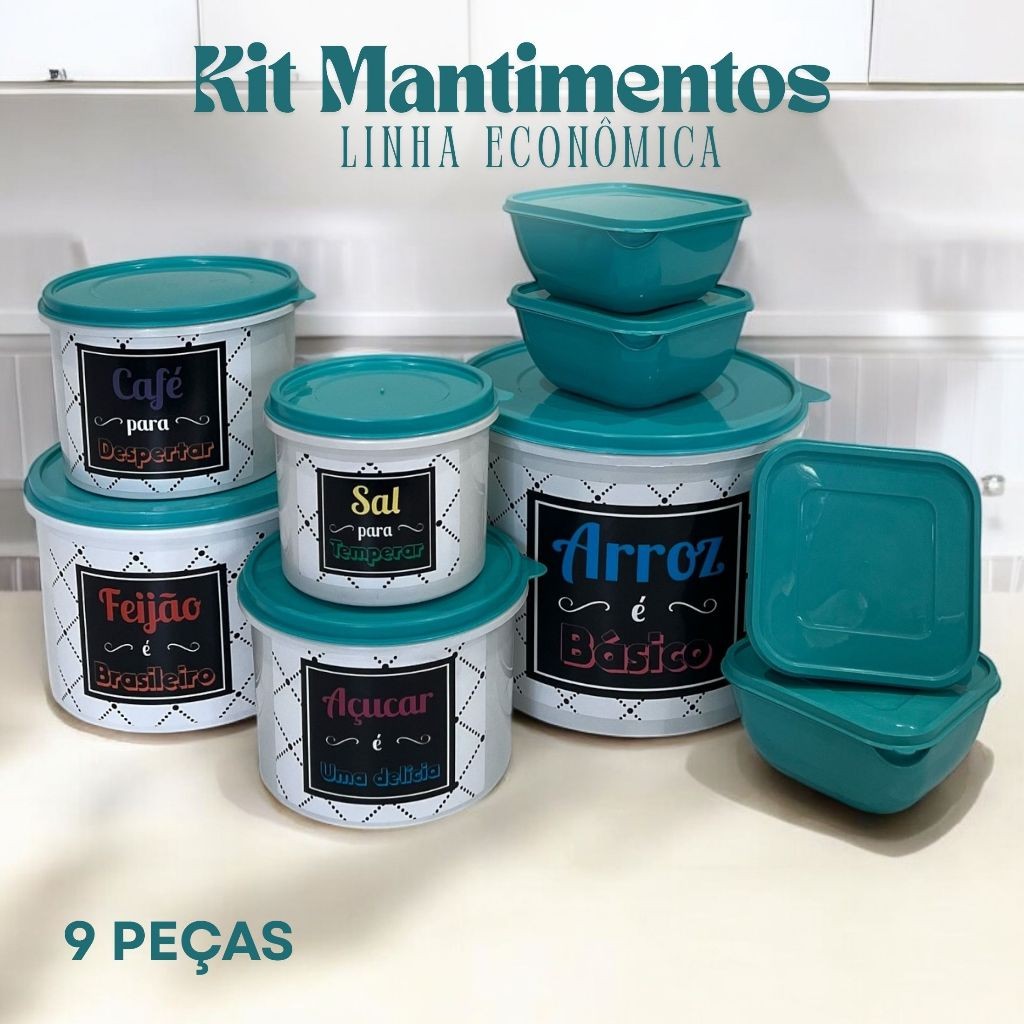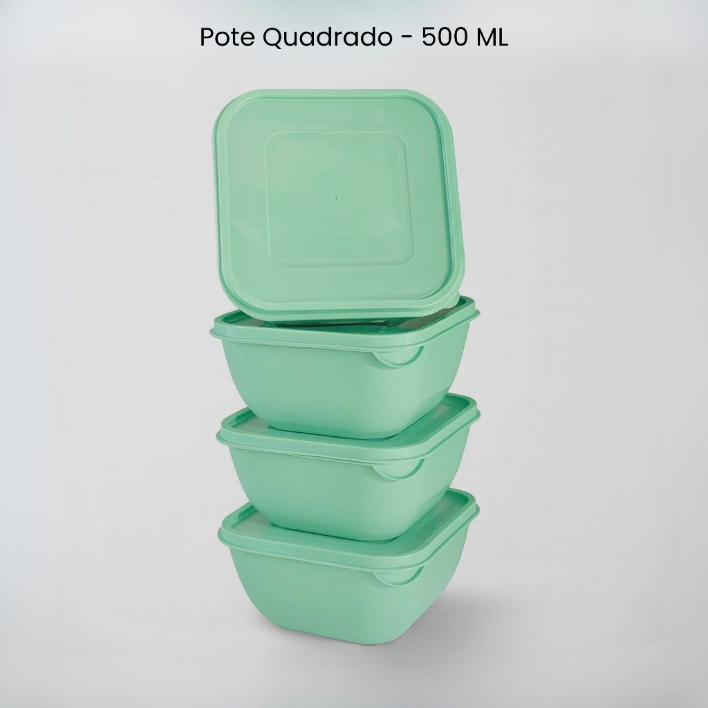 Conjunto 9 Potes Herméticos LINHA ECONÔMICA – 5 para Mantimentos + 4 Quadrados de 500ml