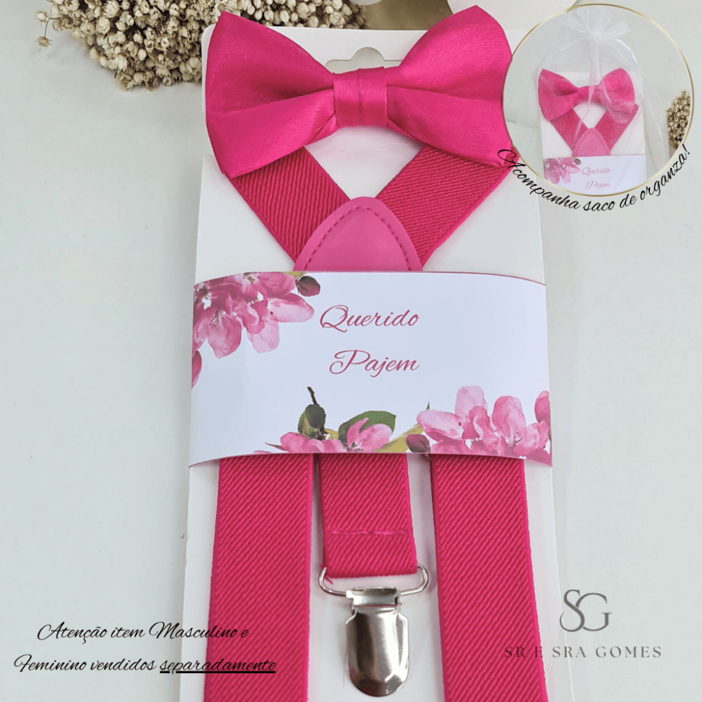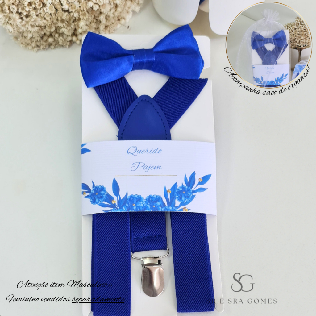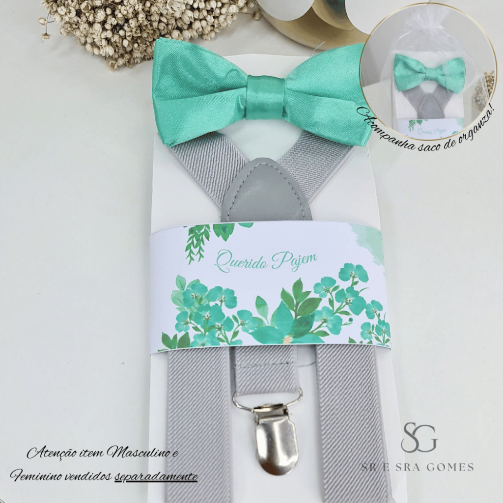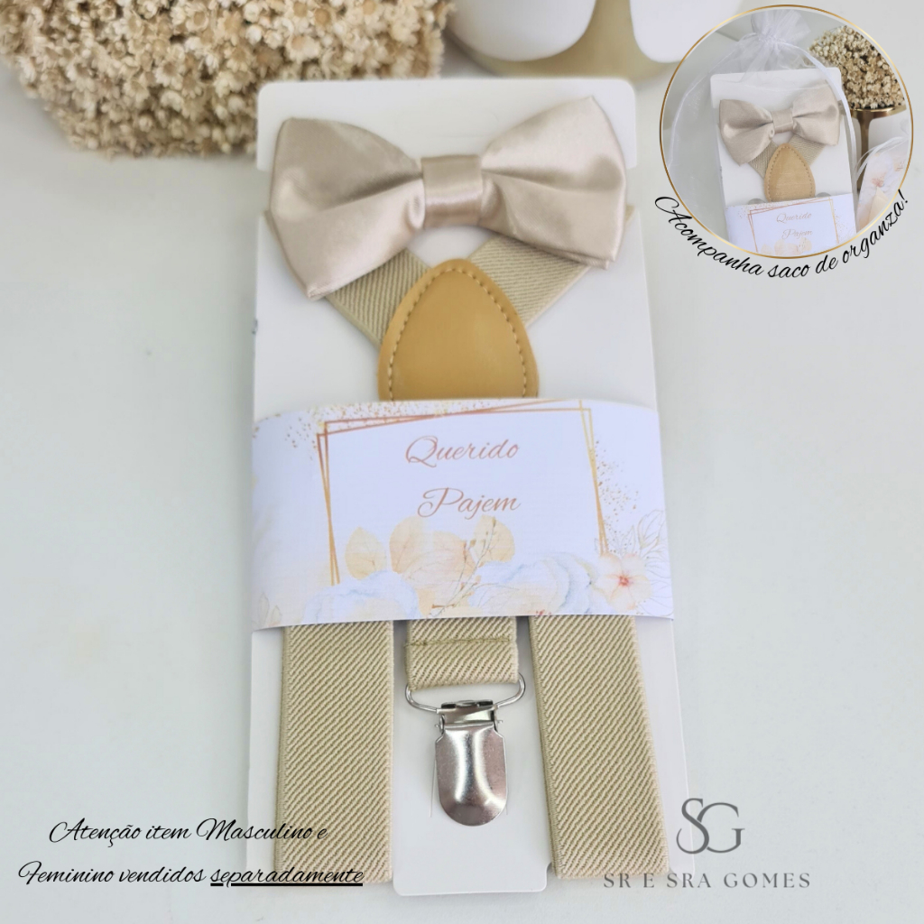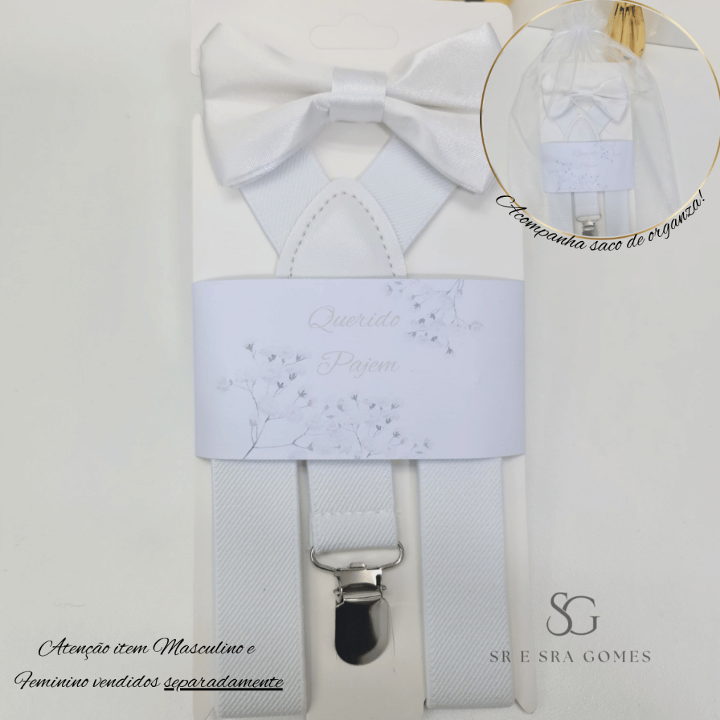 Kit Pajem ou Daminha Infantil com laço cabelo ou kit Suspensório e Tags enviados em saco de Organza