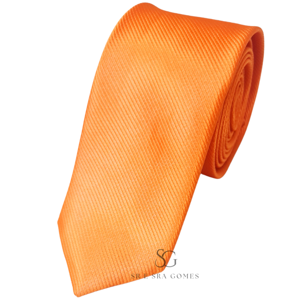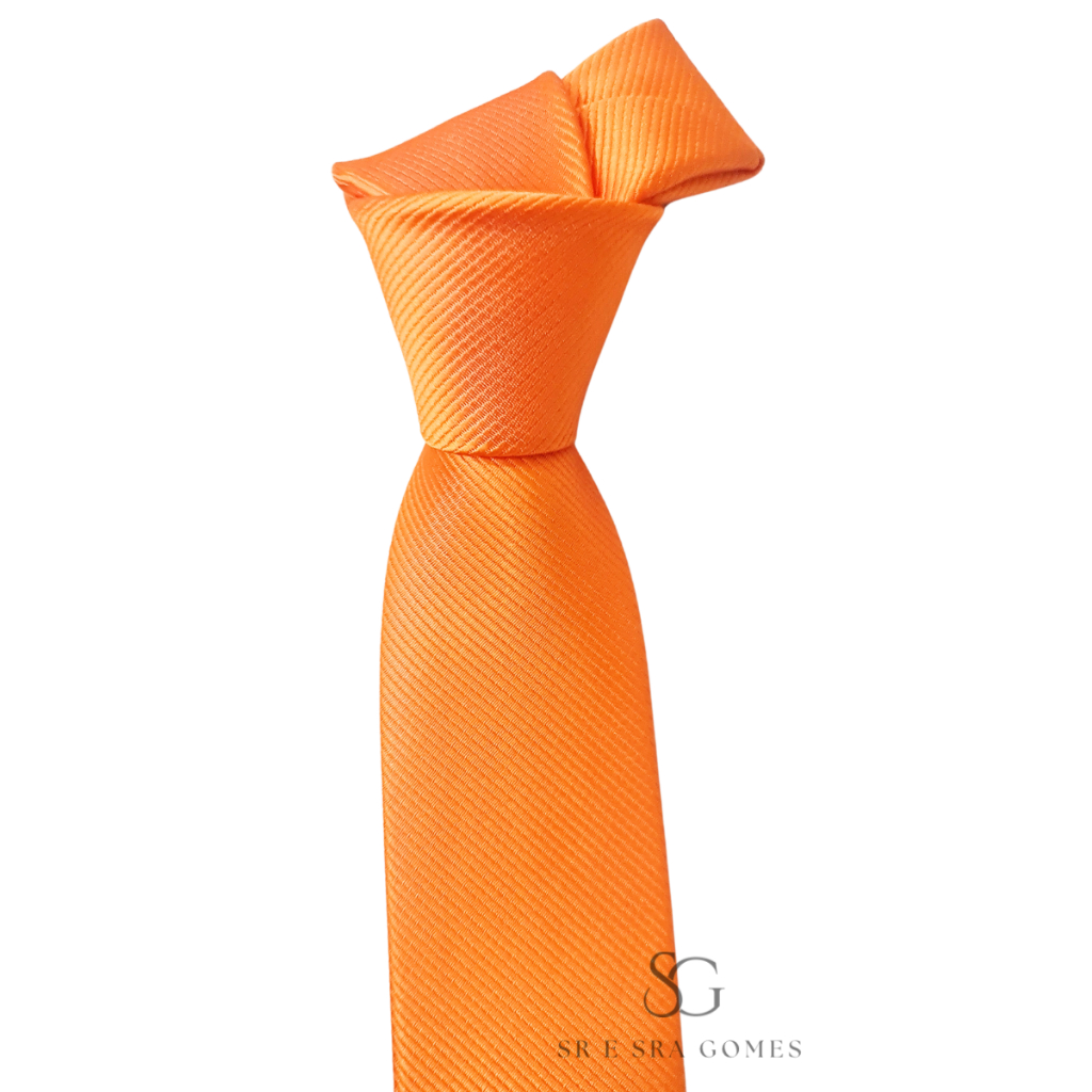 Gravata Laranja Tecido Trabalhado Riscadinho