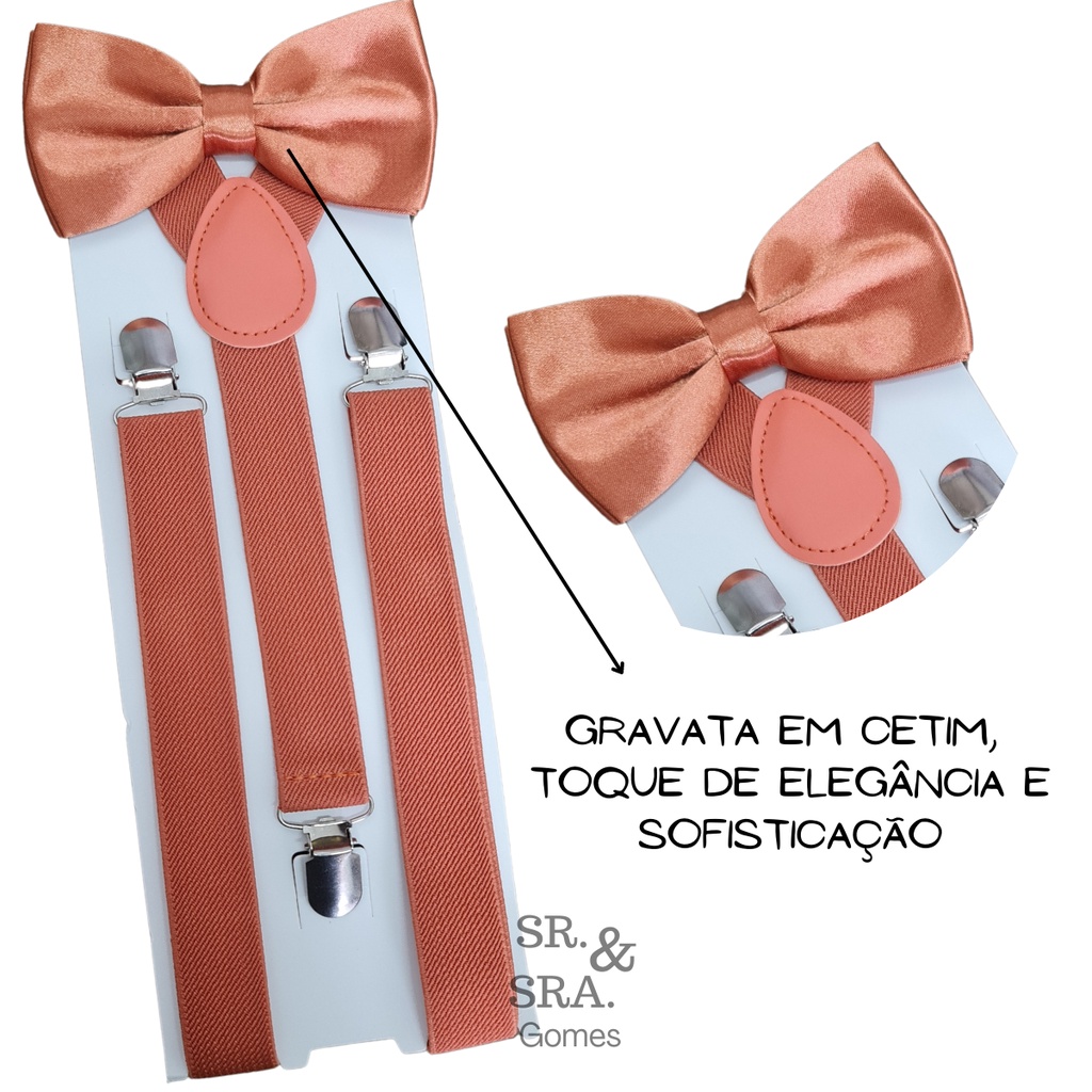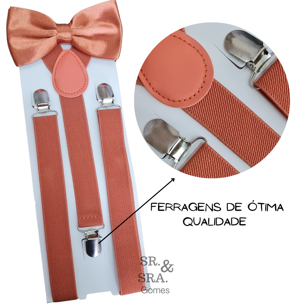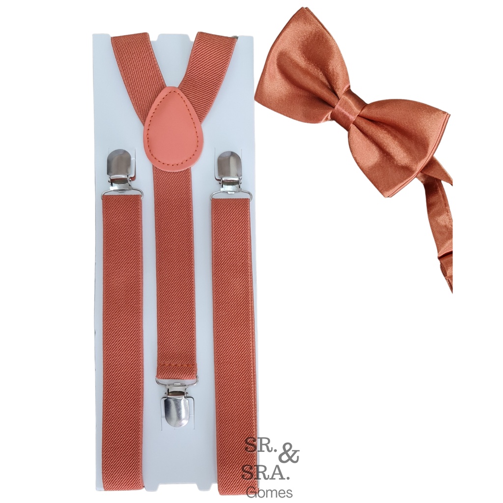 Kit Suspensório Terracota + Gravata Borboleta Adulto