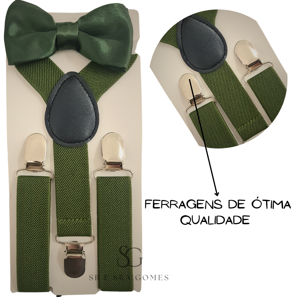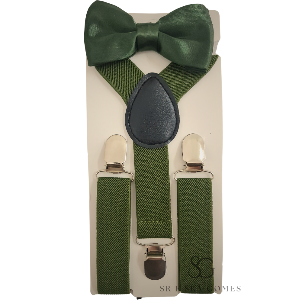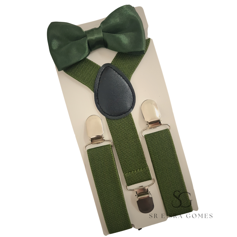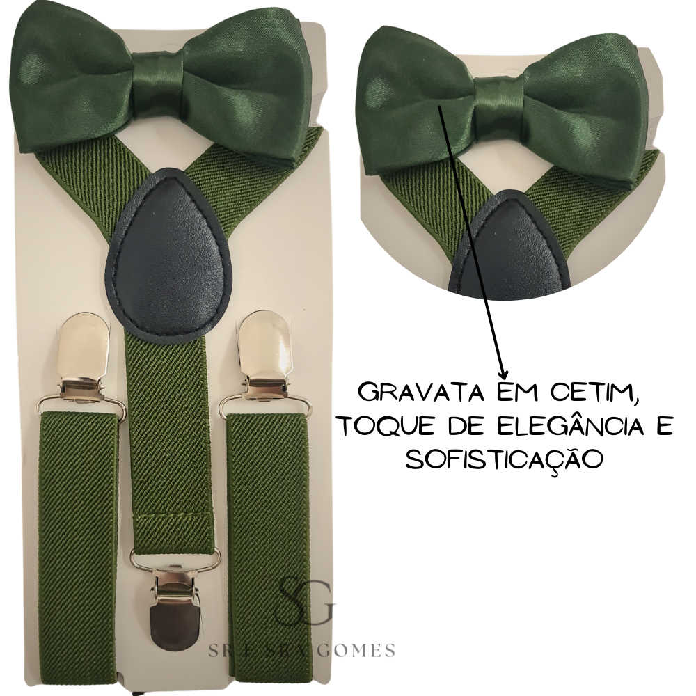 Kit Suspensório Verde Oliva + Gravata Borboleta Infantil