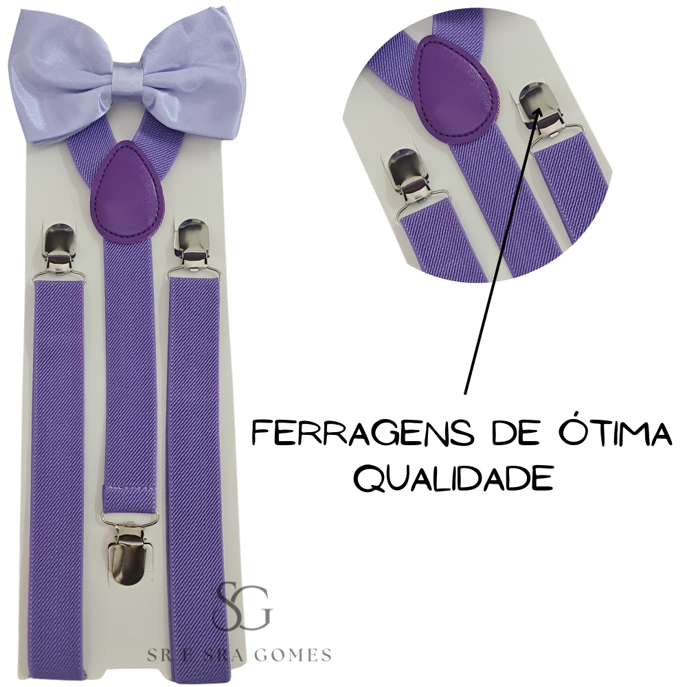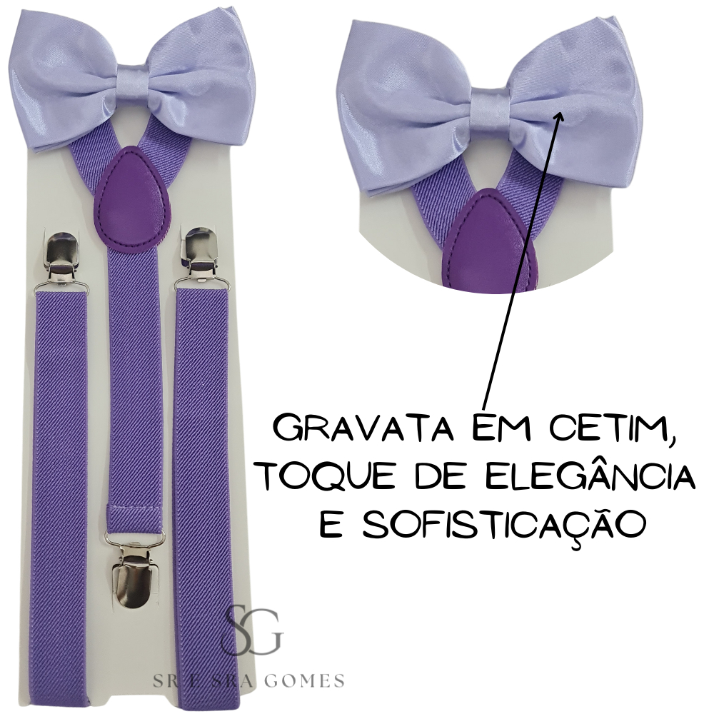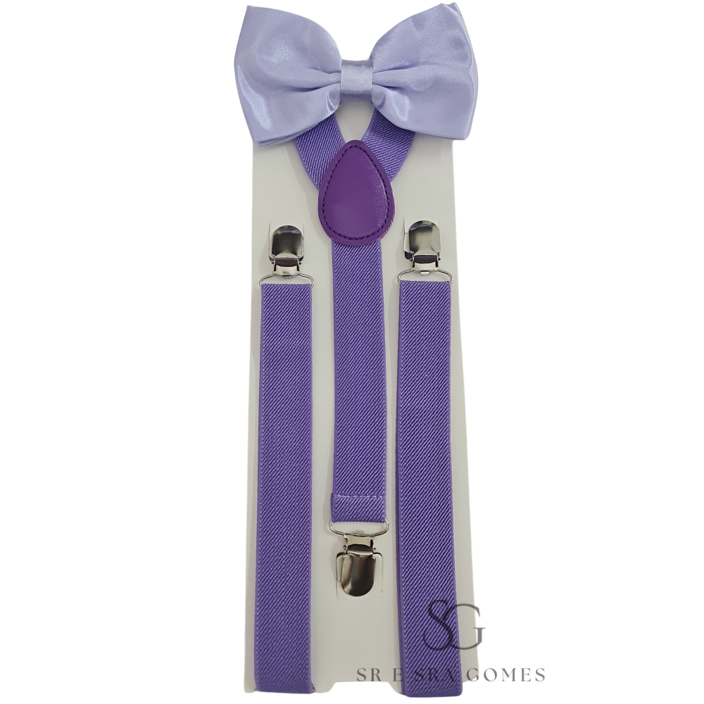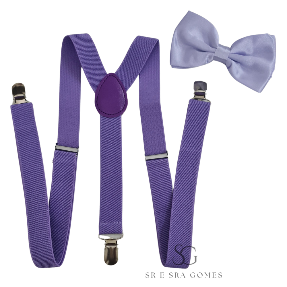 Kit Suspensório Lavanda + Gravata Borboleta Adulto