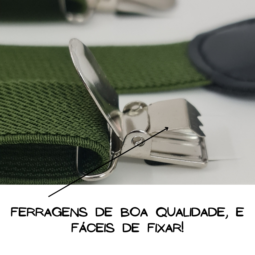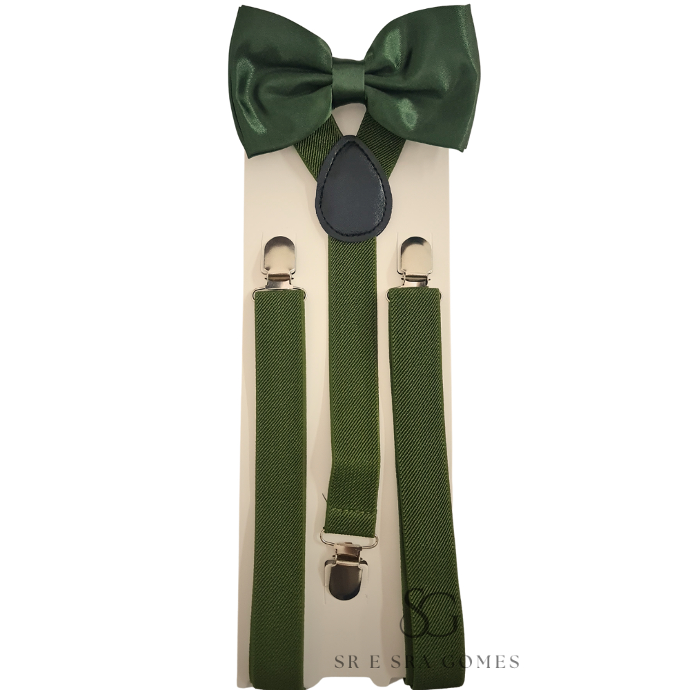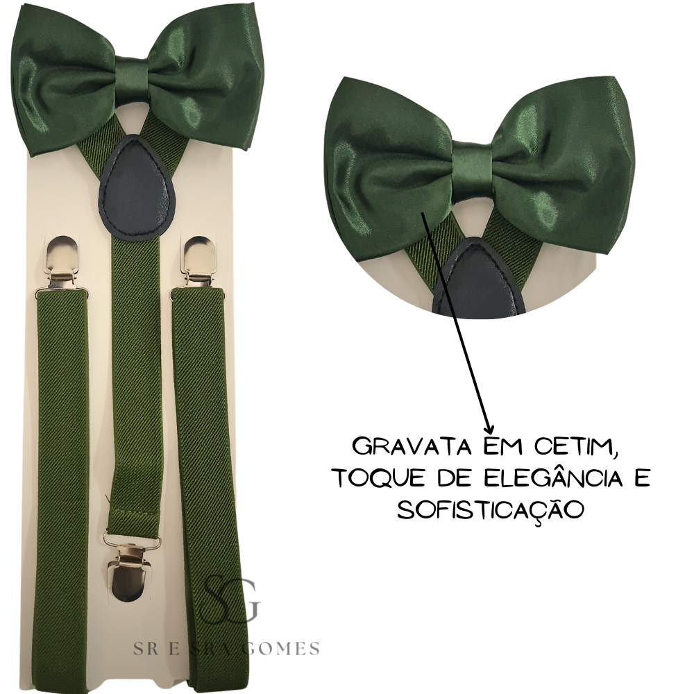 Kit Suspensório Verde Oliva + Gravata Borboleta Adulto