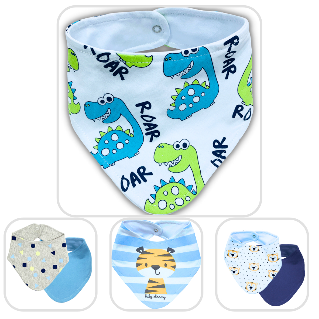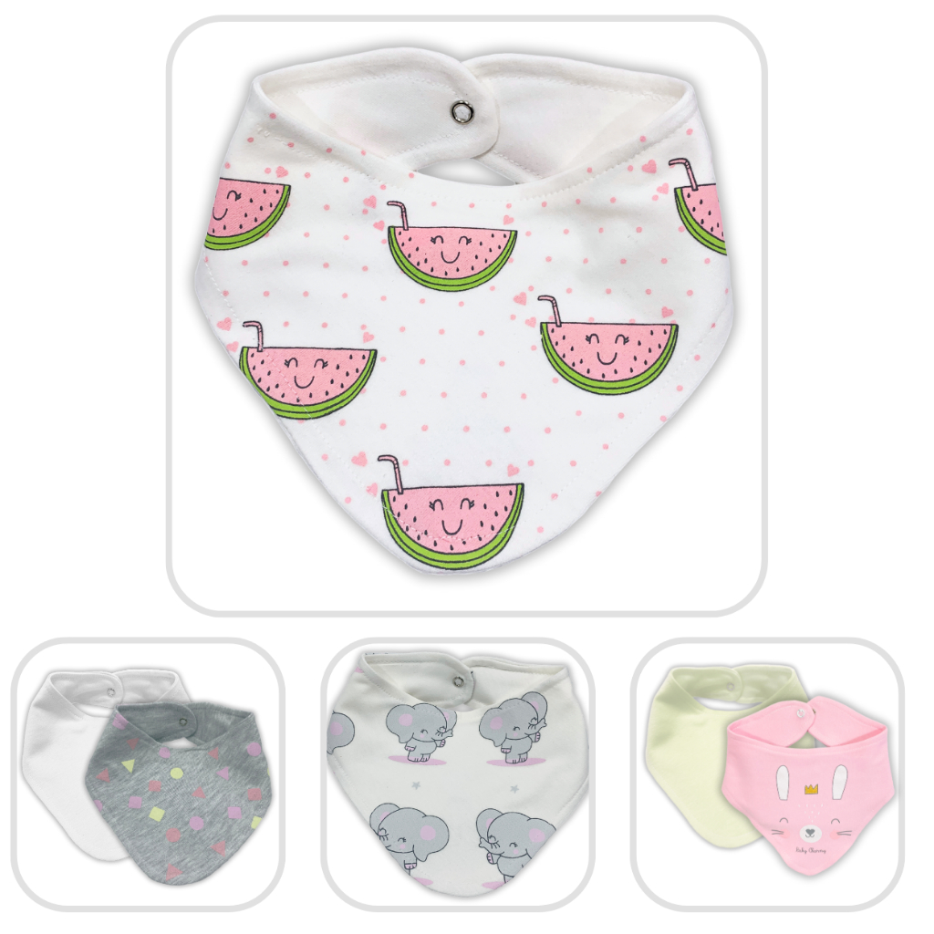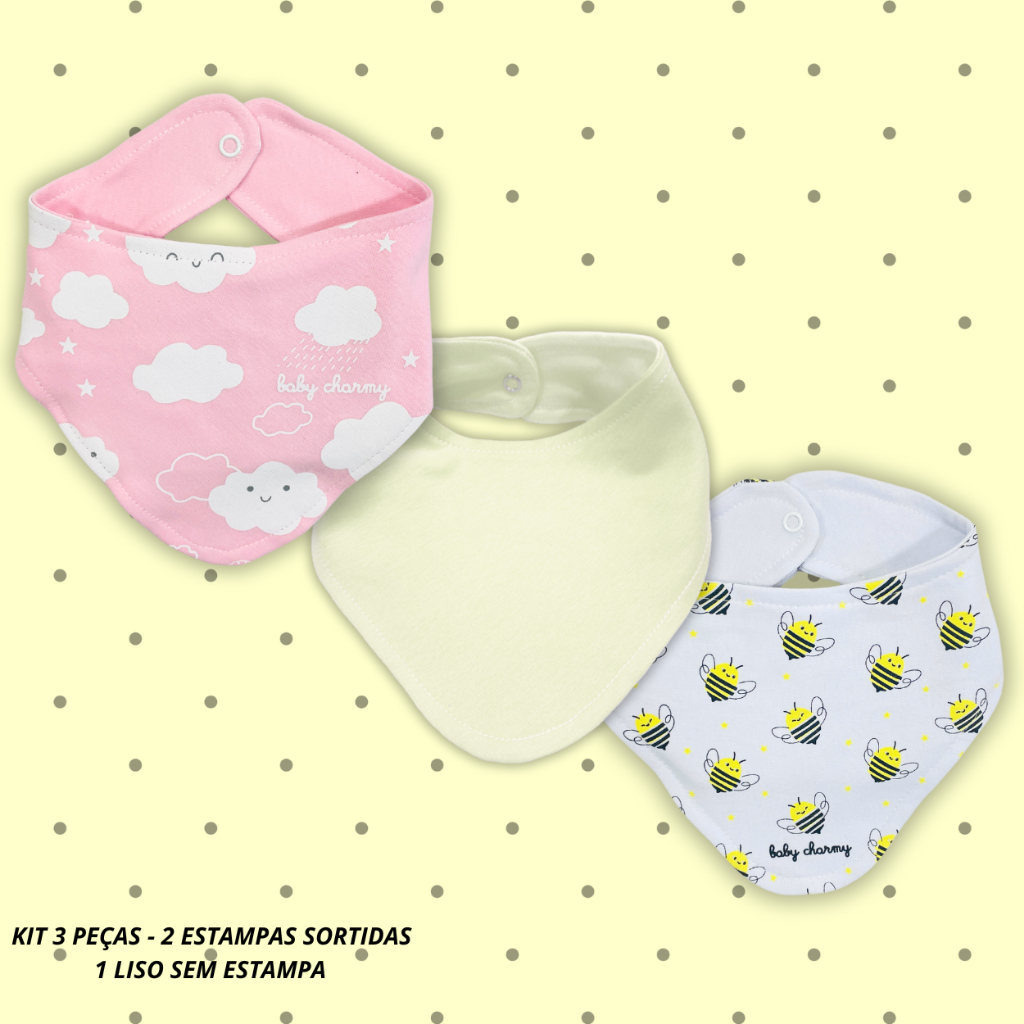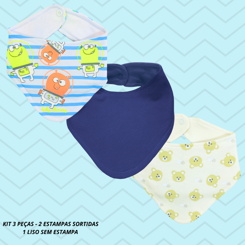 Kit 3 ou 6 peças Babador Bandana de Suedine Duplo de Algodão super macio e estampas lindas