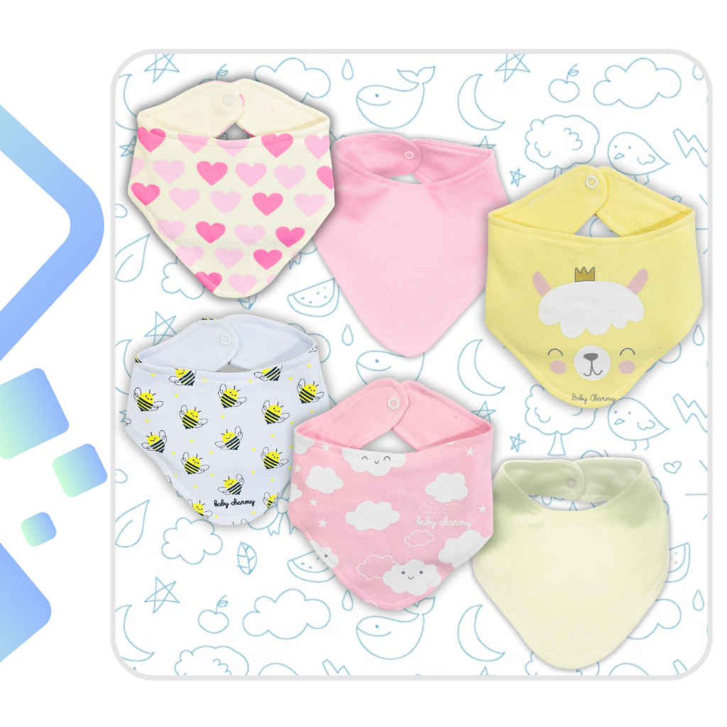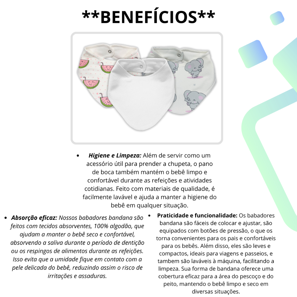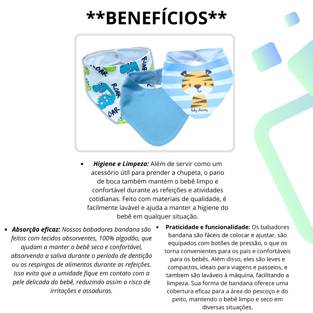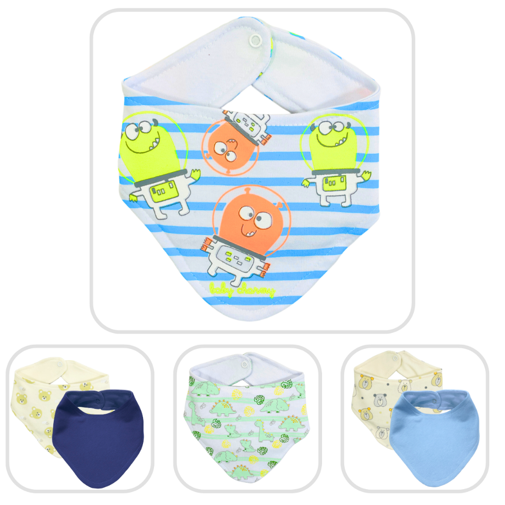 Kit 3 ou 6 peças Babador Bandana de Suedine Duplo de Algodão super macio e estampas lindas