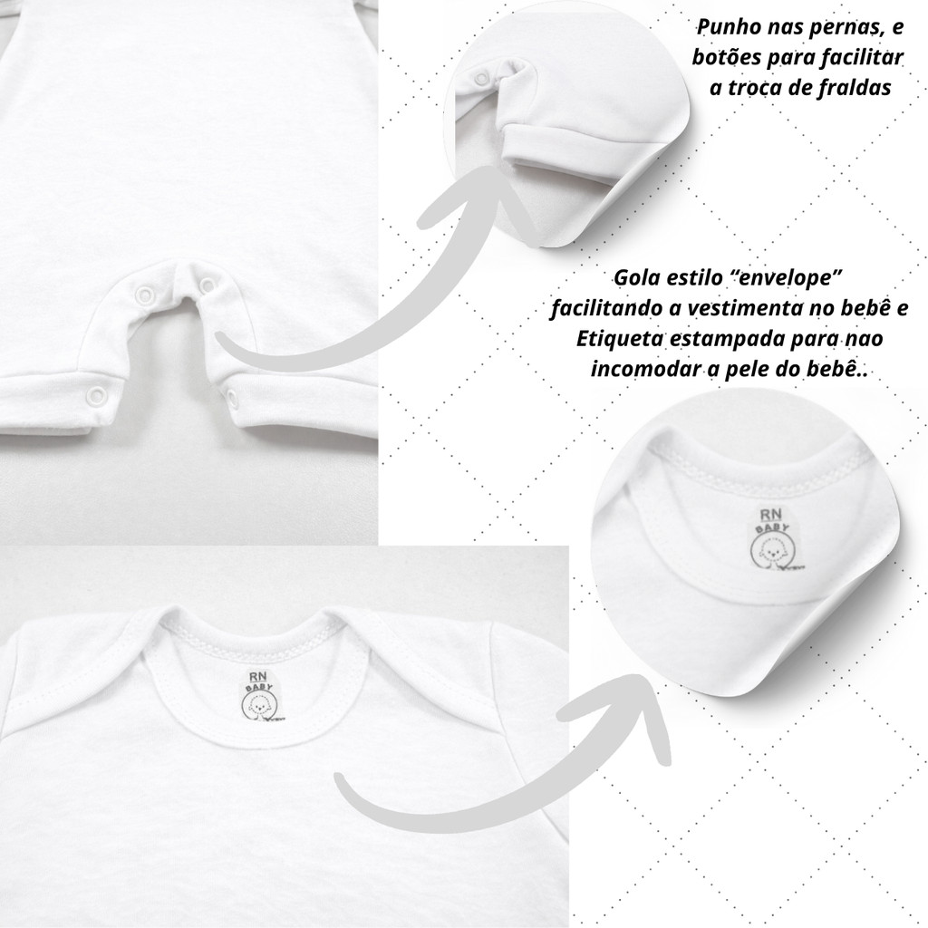 Body Macacão Curto Bebê Liso Algodão Ideal para o Dia a Dia
