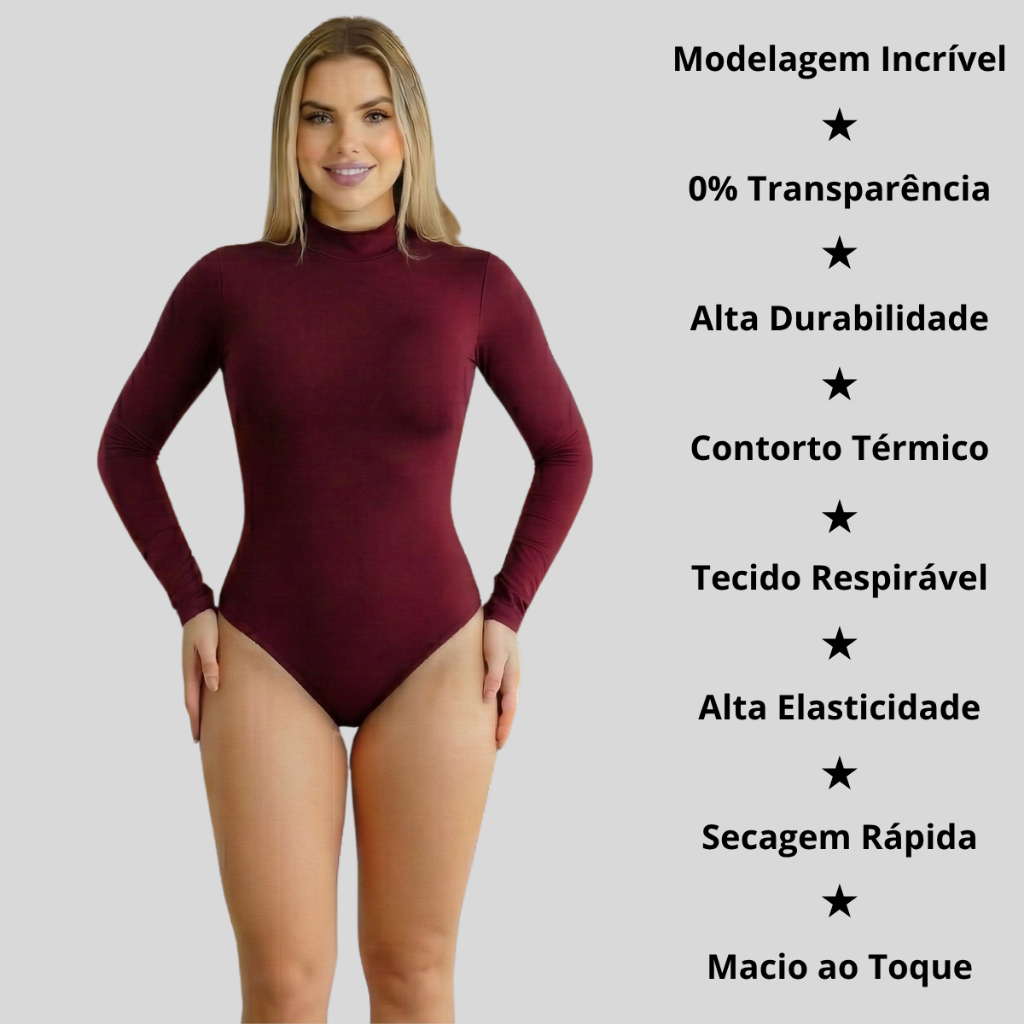 Body Feminino Manga Longa Gola Alta Segunda Pele Cacharrel Forro Duplo Inverno Moda Blogueira Tendência Suplex Premium