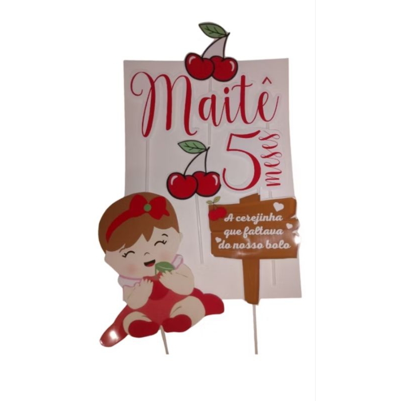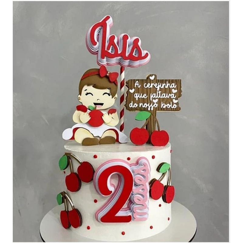 Topo de Bolo Cerejinha/Topper de Bolo Cerejinha/festa infantil/mesversário Cerejinha/decoração de bolo/cereja /Cerejinha