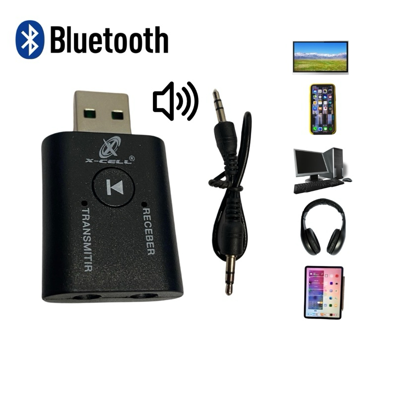 Adaptador Receptor Transmissor de Áudio e Vídeo via Bluetooth 5.0 +Cabo Auxiliar P2 X-Cell XC-BTT-06