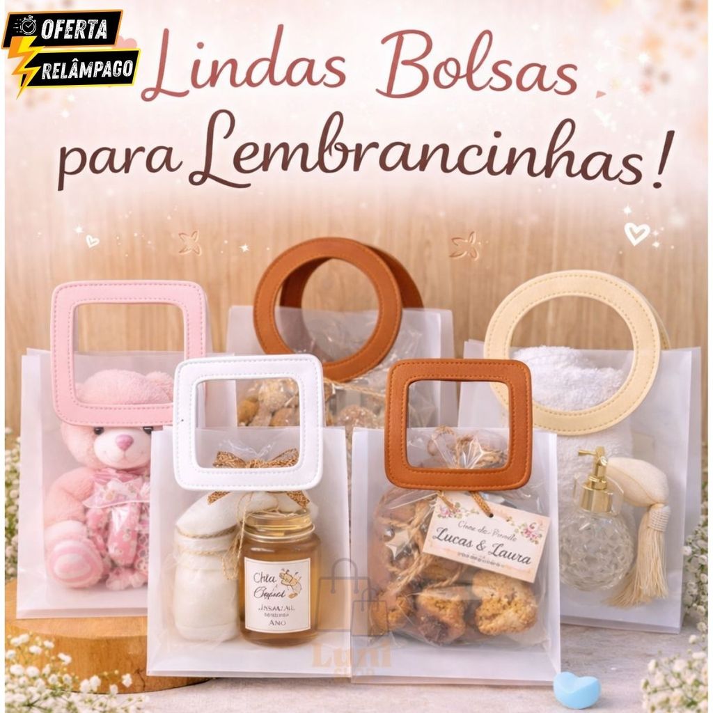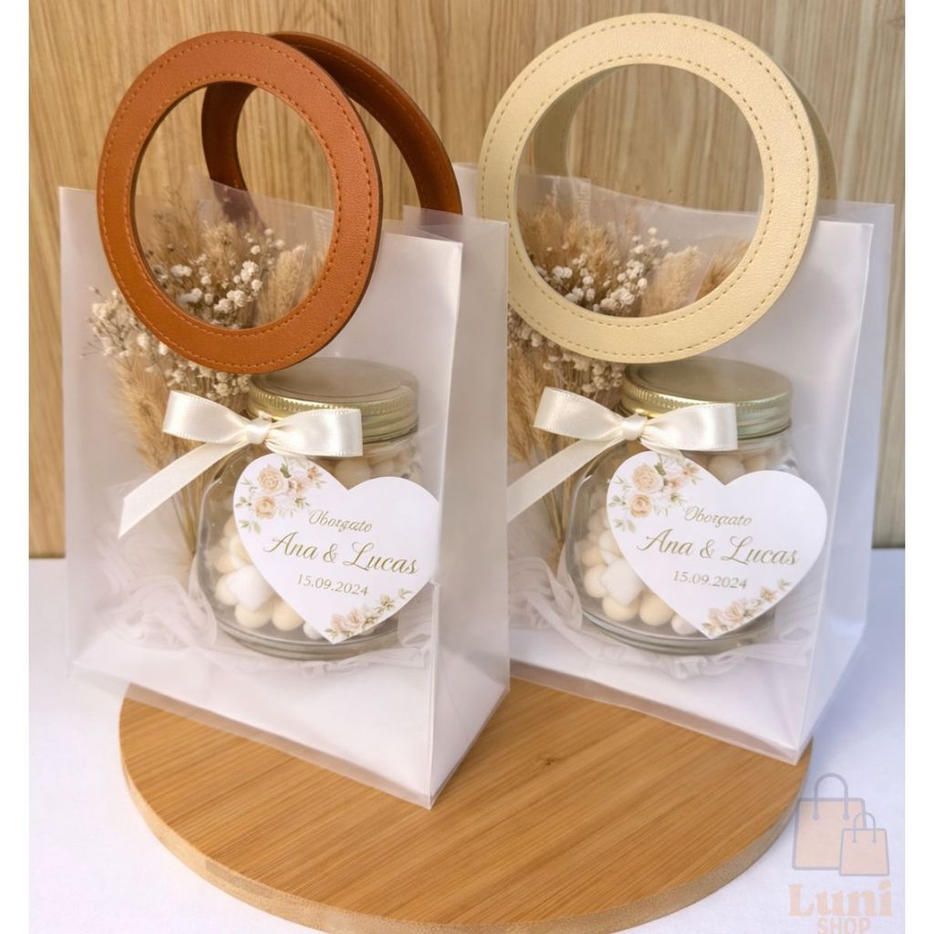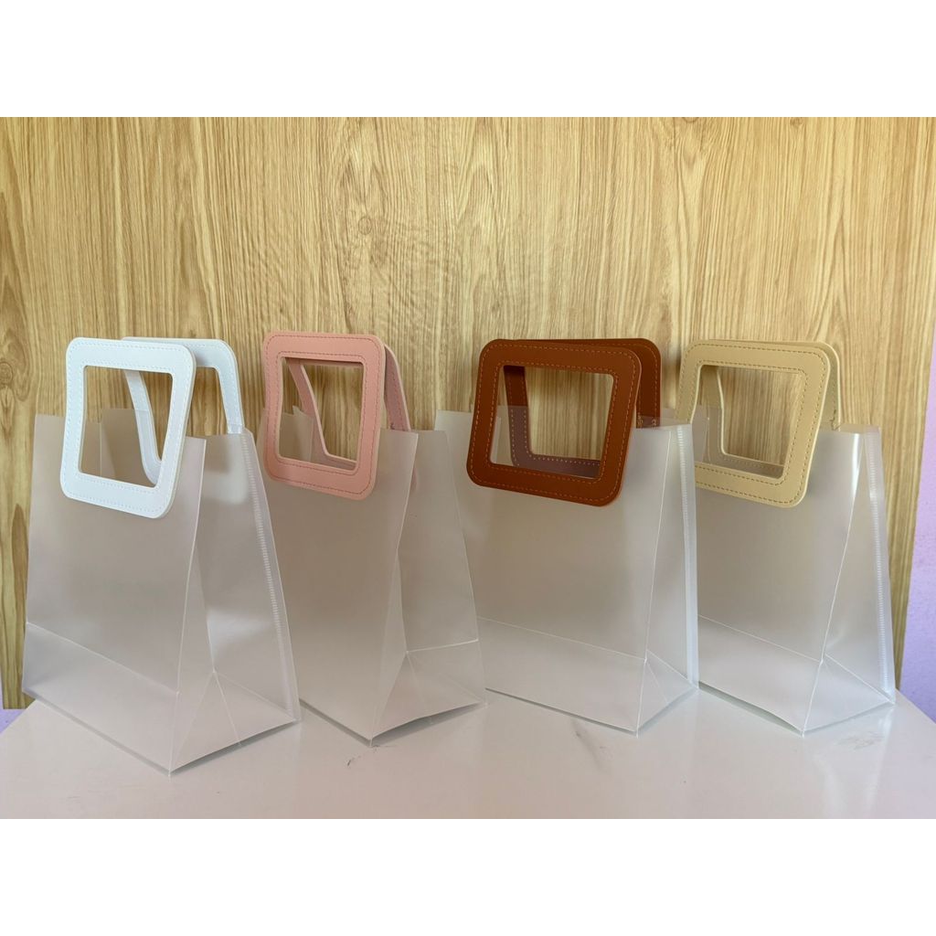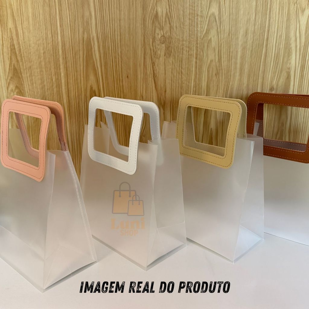 Kit Bolsas 4, 5 ou 10 Sacola De Presente Fosca Translúcido Alça Redonda ou Quadrada Couro Sintético Em Cores Variadas