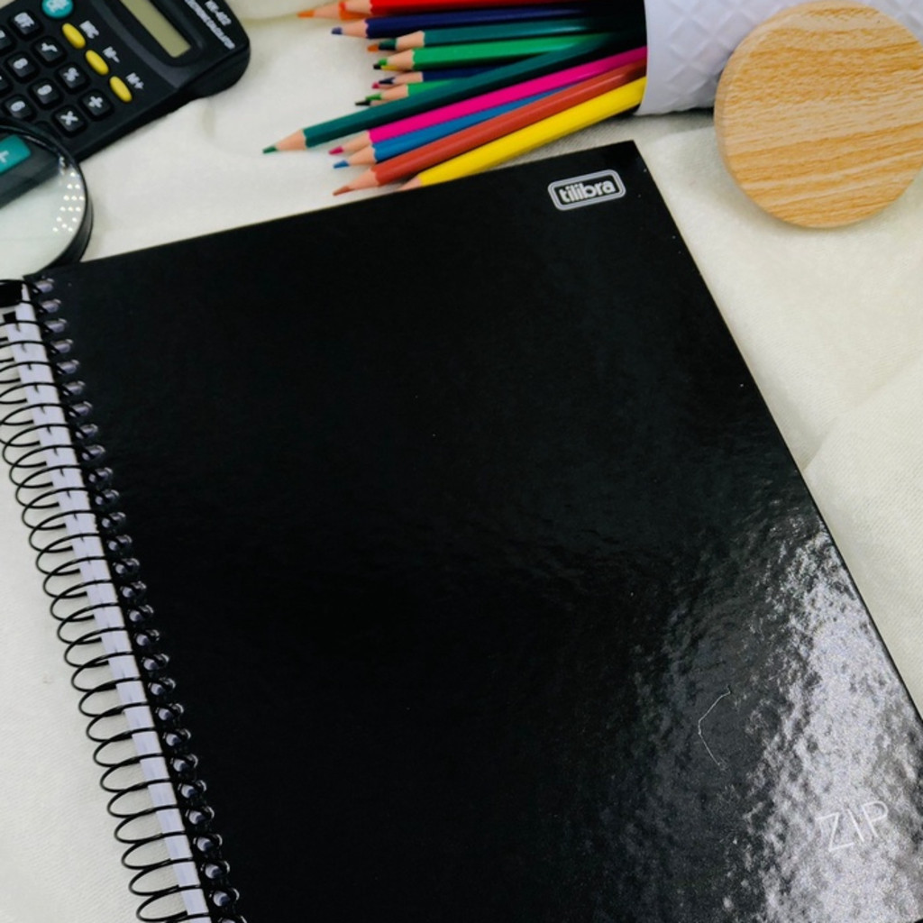 Caderno Tilibra 20 Matérias 320 Folhas Escolar Zip Preto Universidade Capa Dura