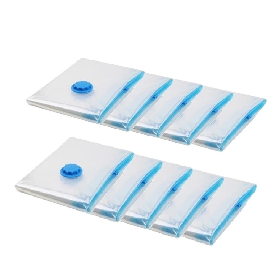 Kit 10 Sacos Á Vácuo Reutilizável Transparente Com Válvula E Bomba USB Recarregável Bivolt
