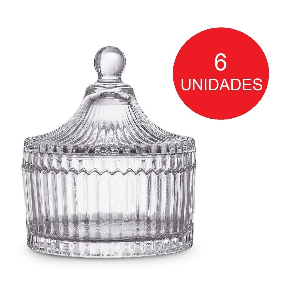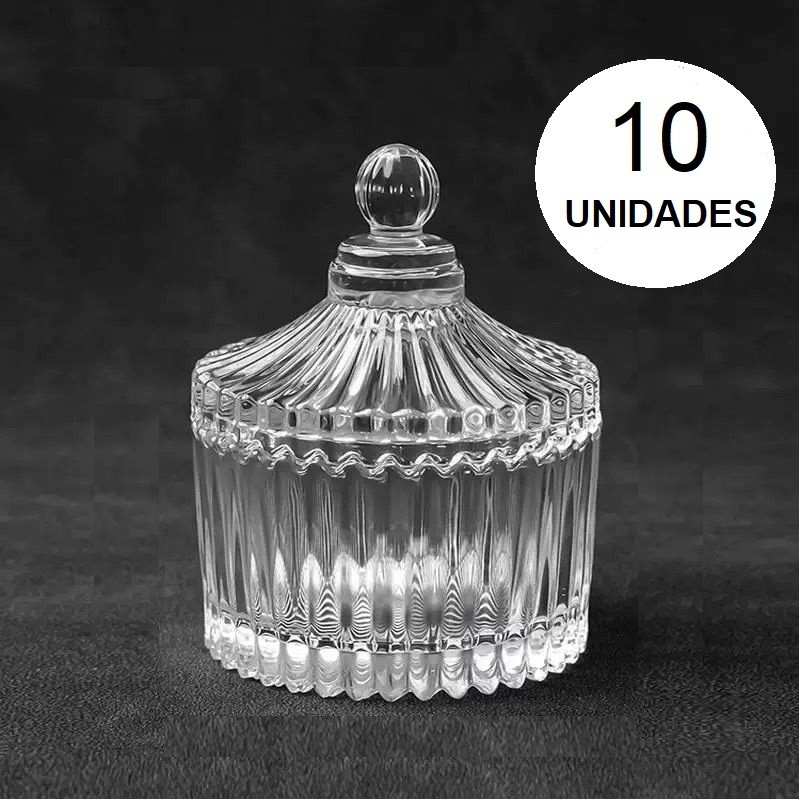 Conjunto 10 Ou 6 Bombonieres Com Tampa 90ML 9x6x4CM Multiuso Original Elegante E Decorativa De Vidro