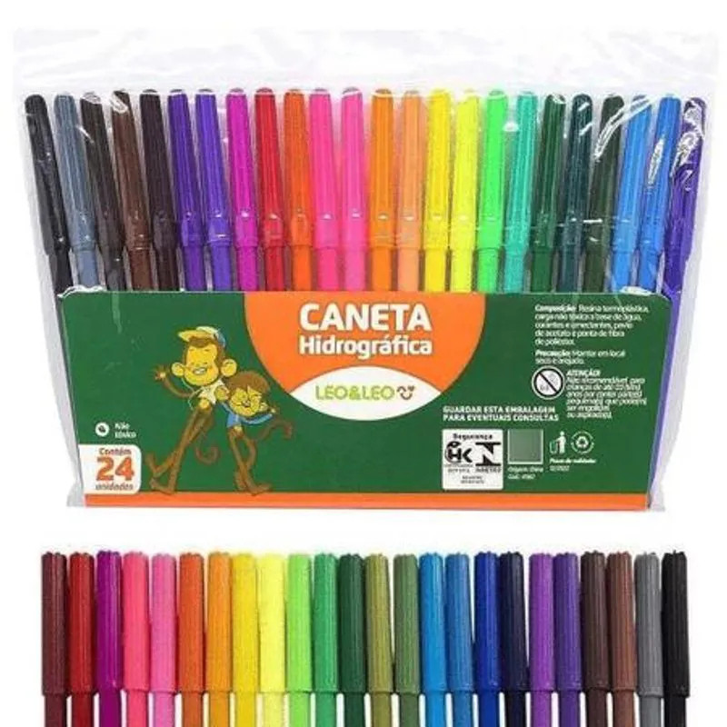 Conjunto Giz De Cera 12 Cores Canetinha 24 cores E Lápis De Cor 24 Cores Escolar Infantil Pintura