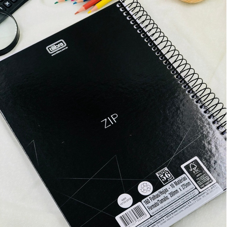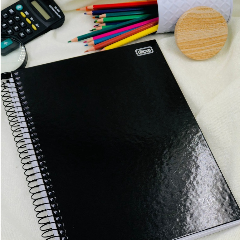 Caderno Tilibra 10 Matérias 160 Folhas Escolar zip Capa Dura Preto capa preta Modelo