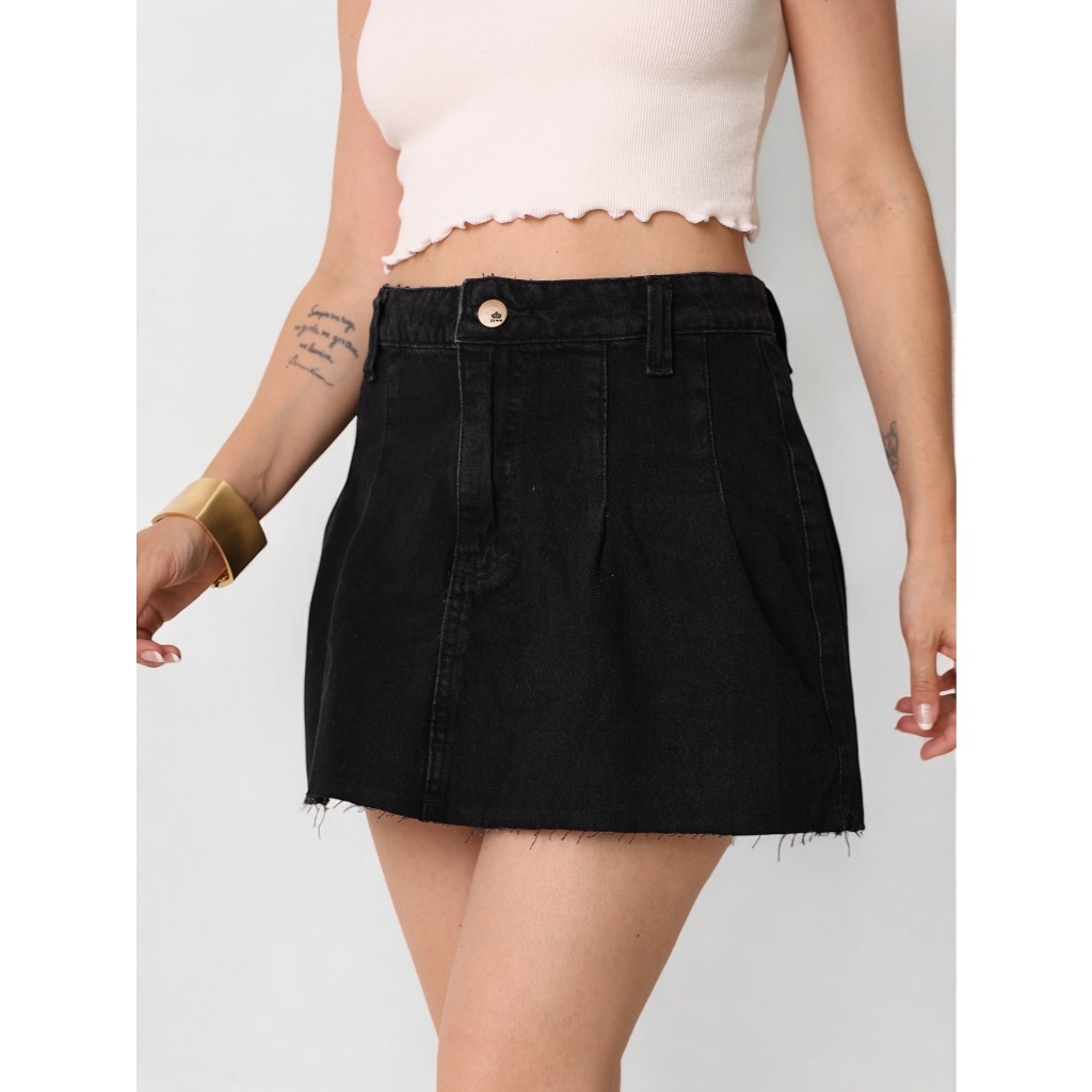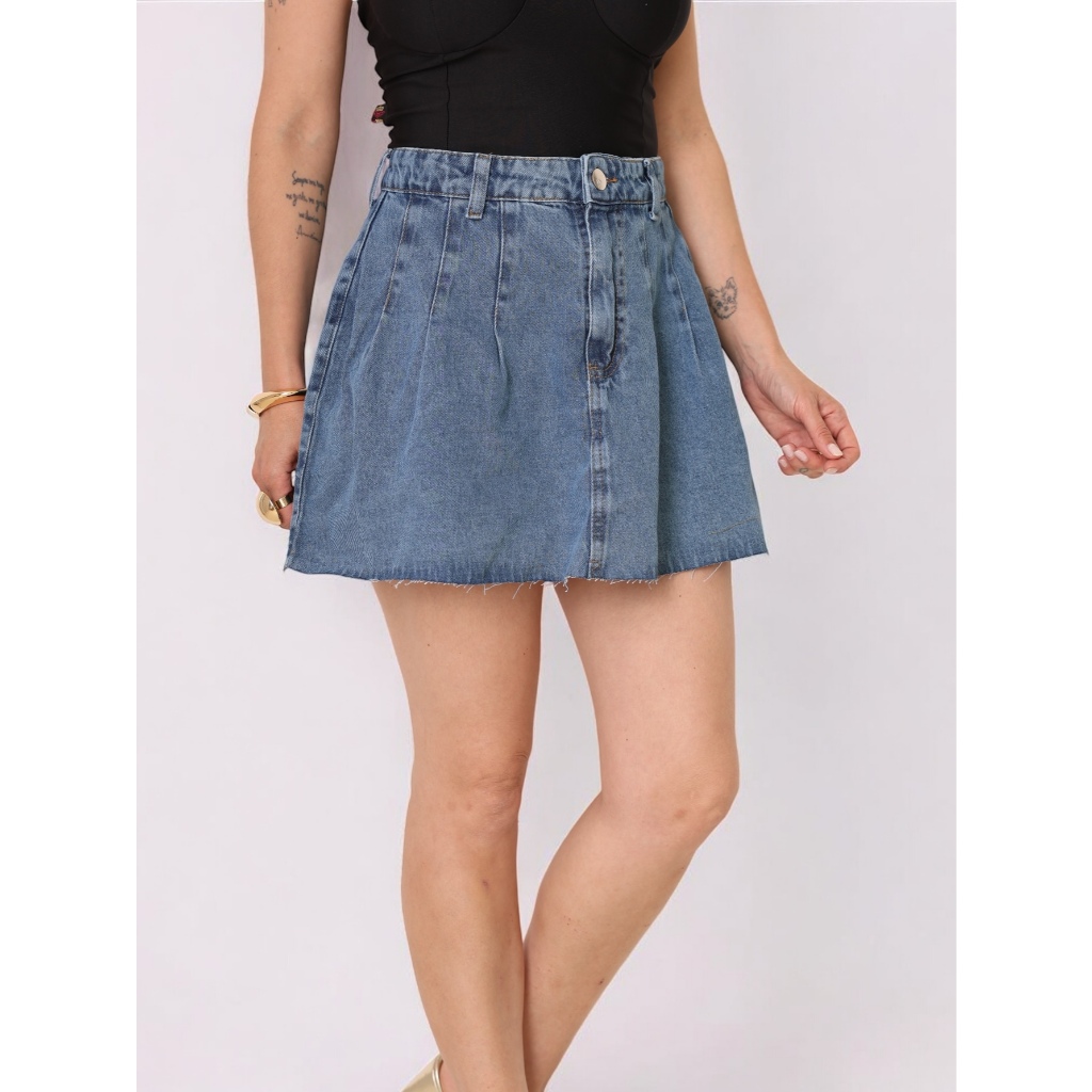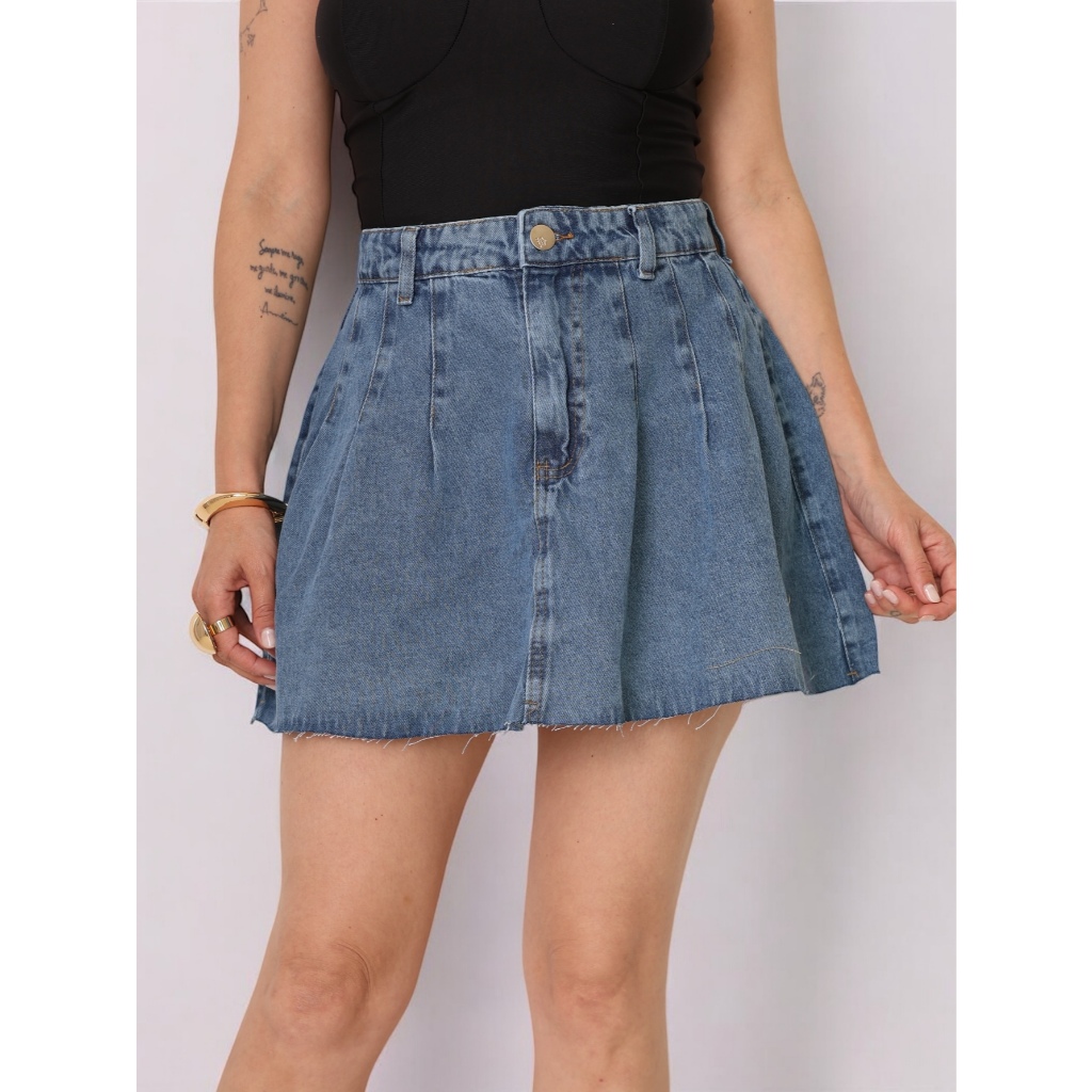 INFINITO MDOA Saia jeans Pinçada, alta moda, fechada com botoes