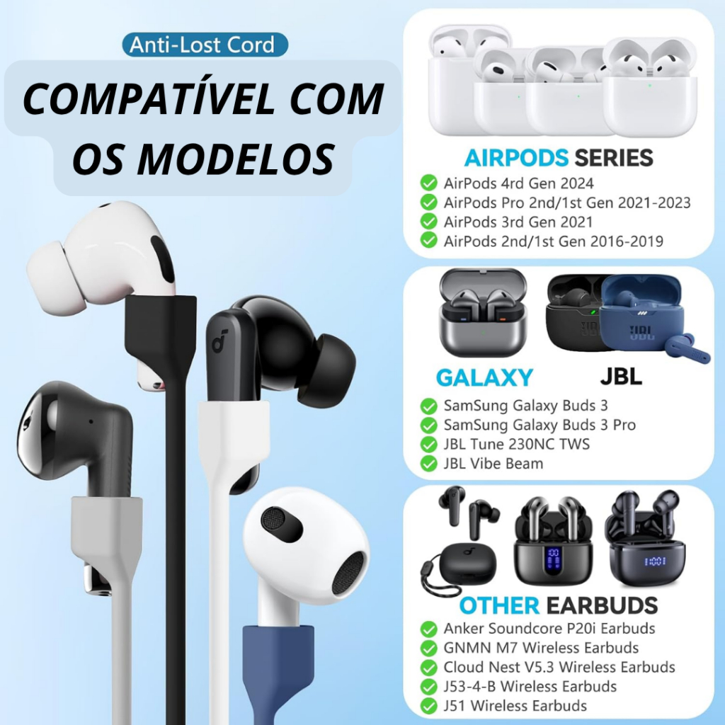 Fio Anti Queda Perca Magnético Cordão Para Fone de Ouvido Iphone AirPods E Outros Modelos Strap 70cm