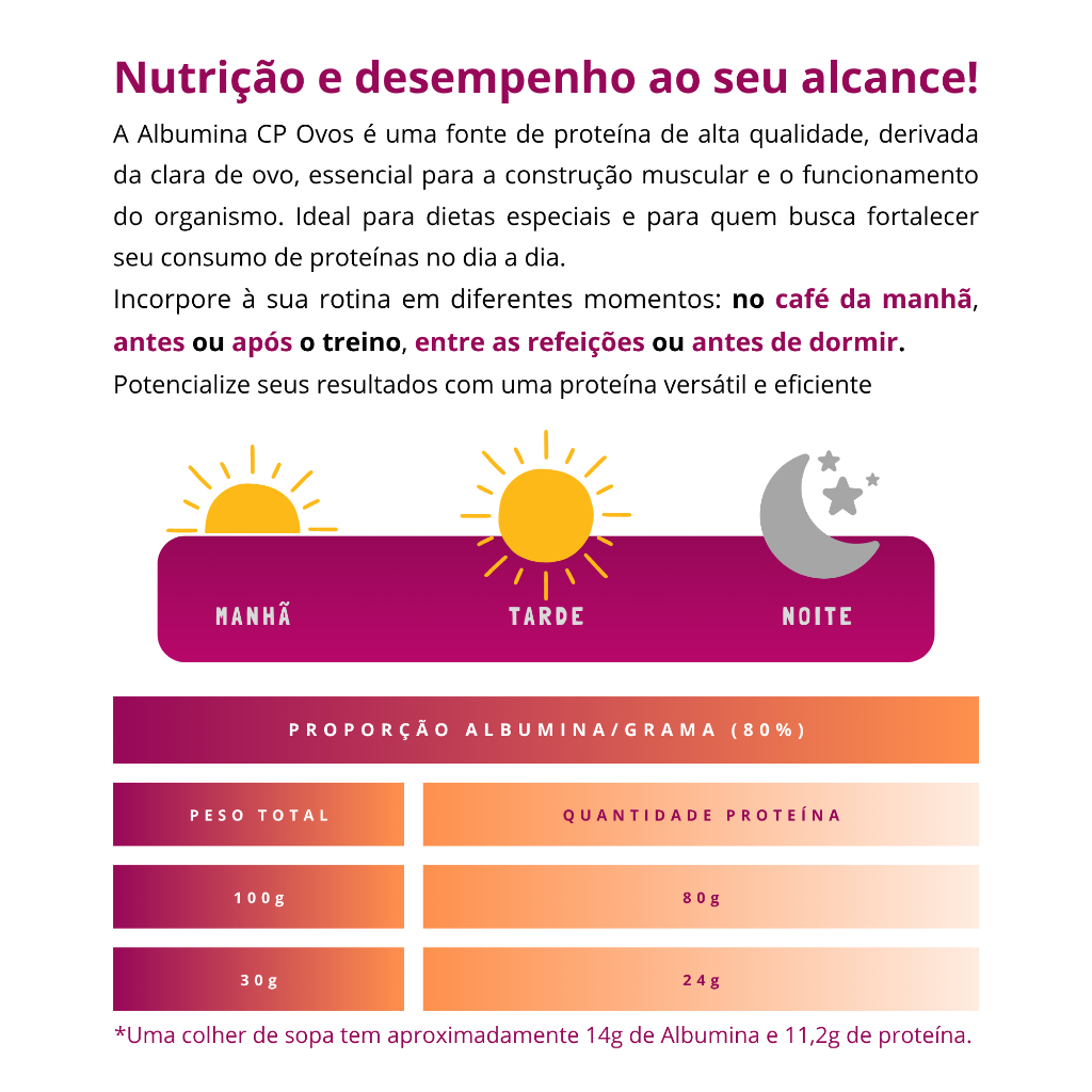 Albumina Pura CP Ovos 500g – 80% Proteína Suplemento em Pó para Ganho de Massa Muscular e Recuperação