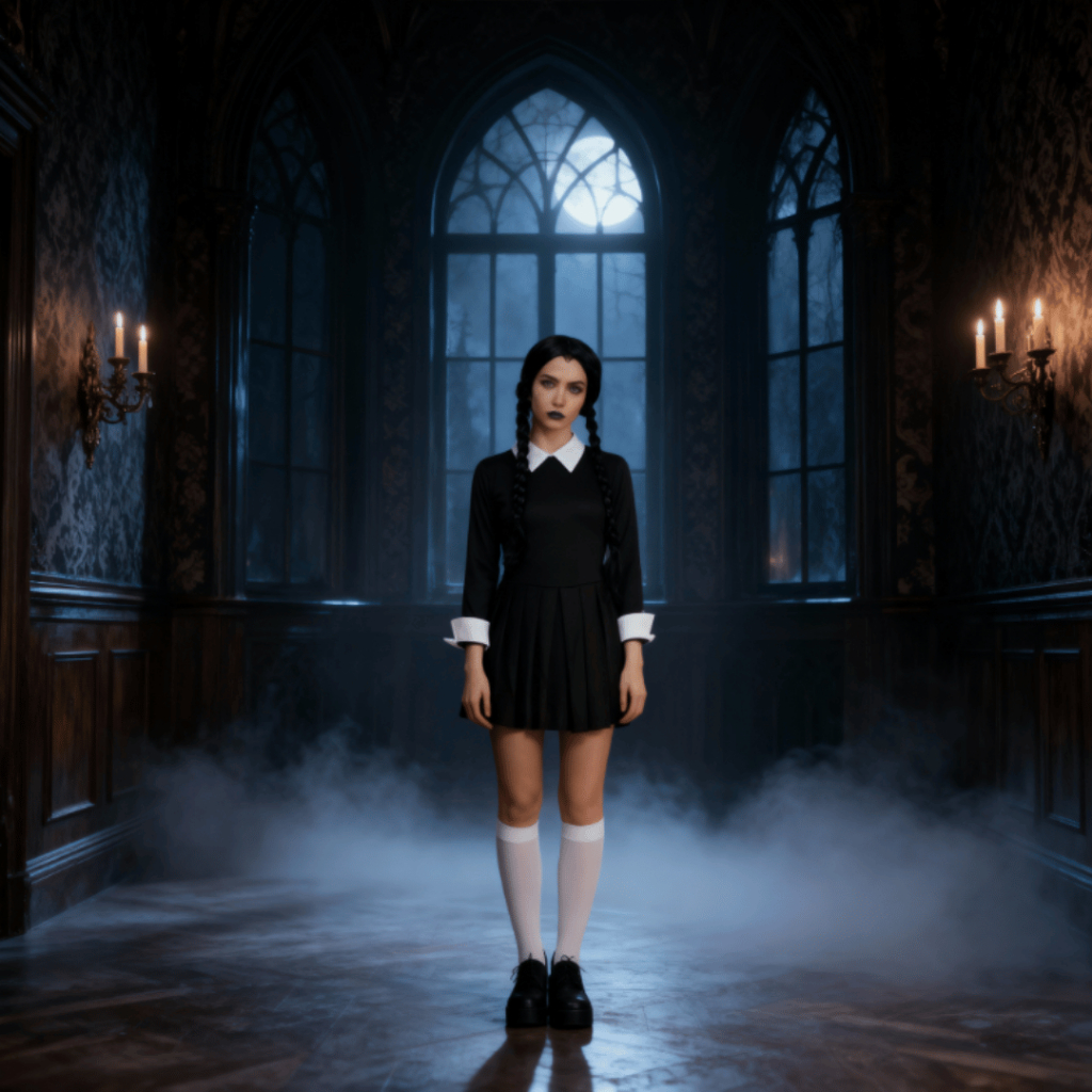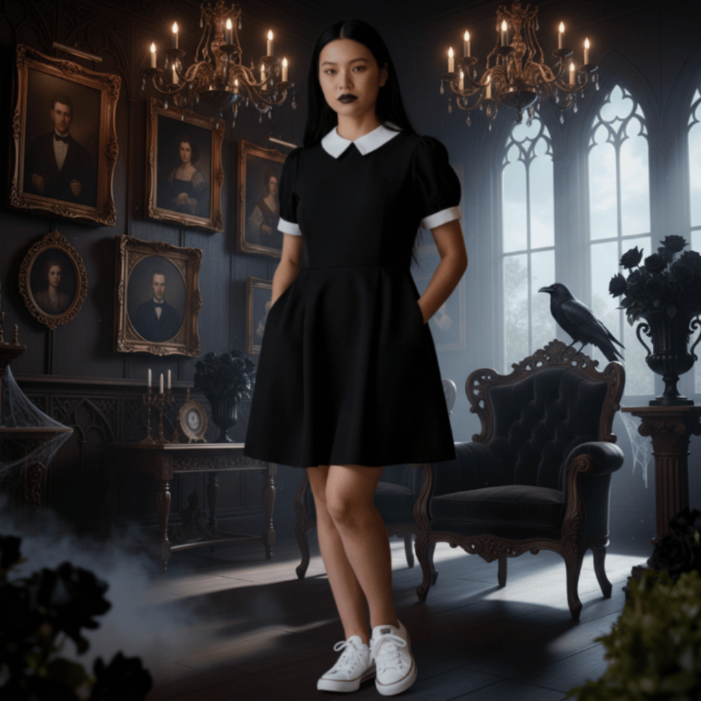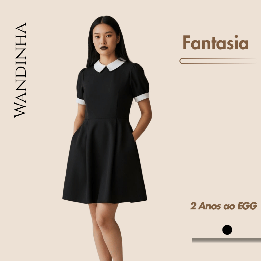 Fantasia Vestido Wandinha Familia Addams - Adulto-Infantil - Super Premium - Entrega Ultra Rápida