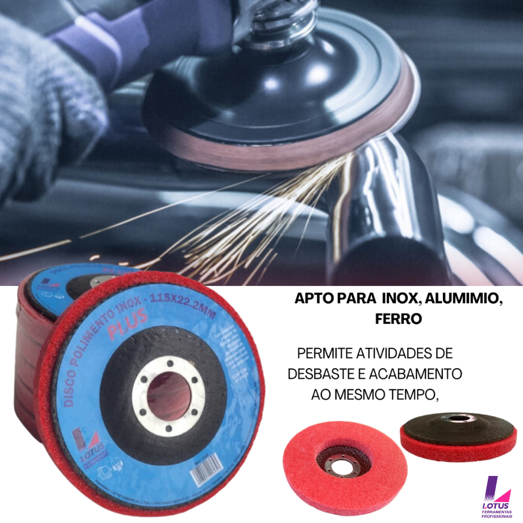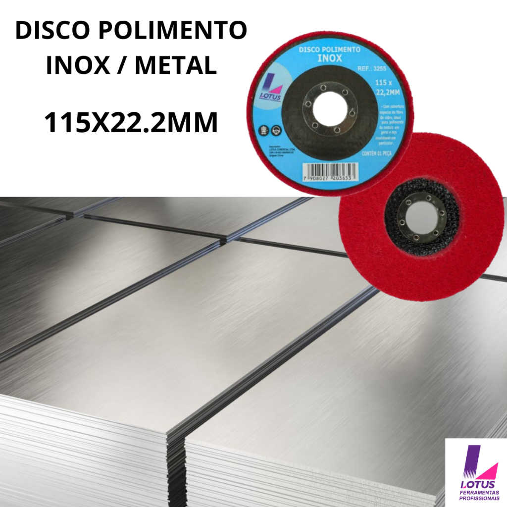 Kit 3 Disco Polimento Inox Alumínio Aço Ferro Metal em Geral - Diametro 115x22,2 - Lotus