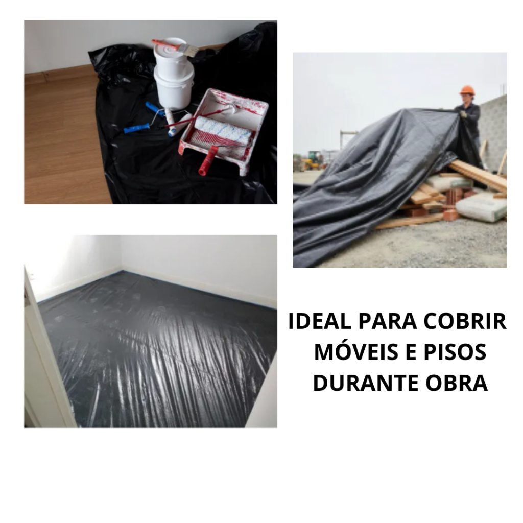 Plástico Preto para Obra, Lona para Cobrir Móveis, Proteção contra Poeira e Tinta