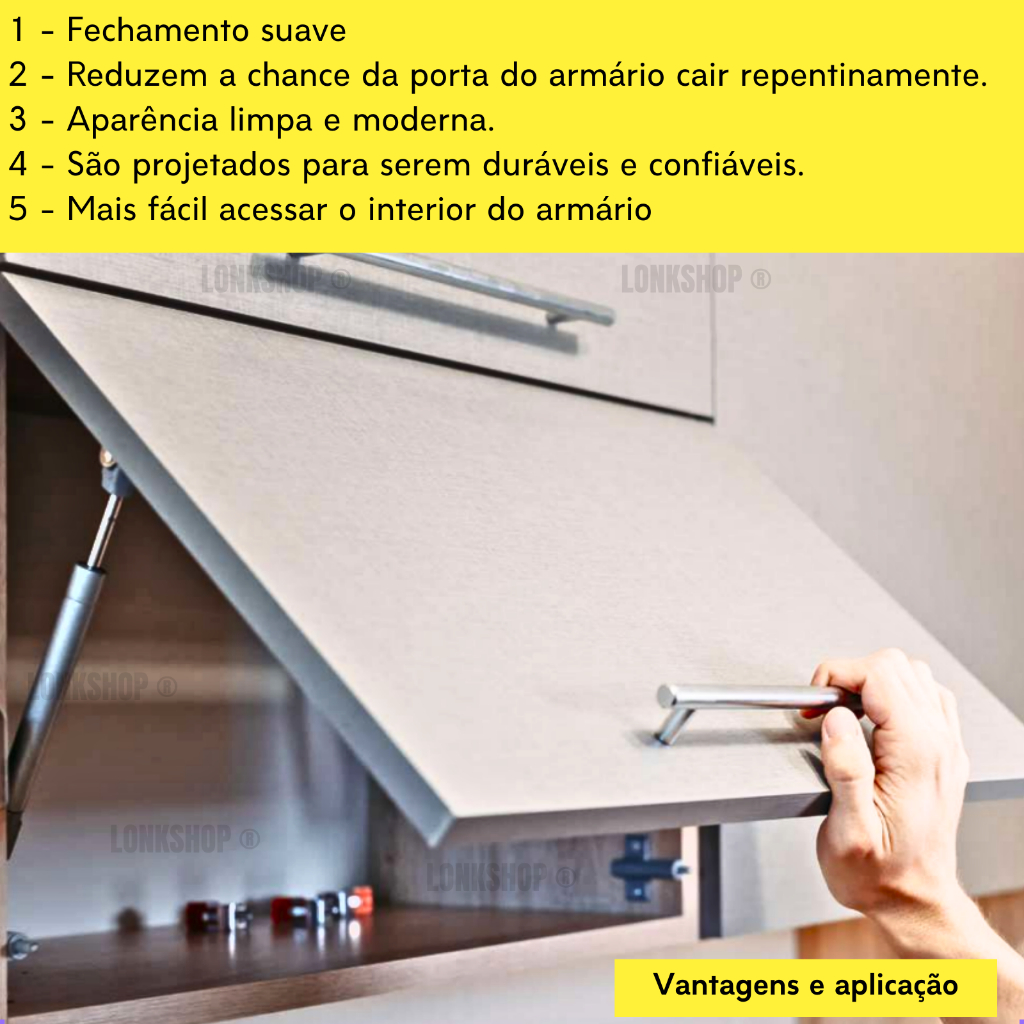 Kit 04 Pistão Amortecedor Armário de Cozinha Abre Para Cima