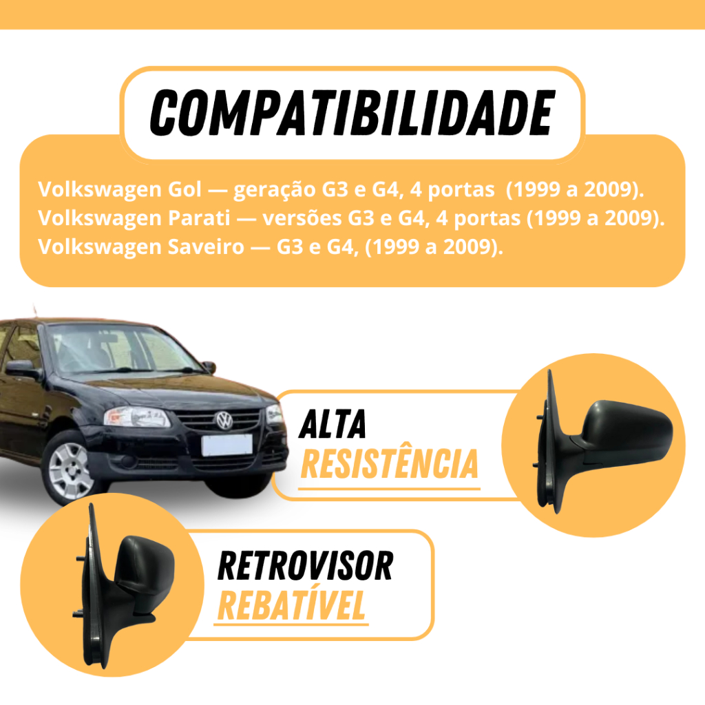 Par Retrovisor Gol Parati Saveiro G3 G4 4 Portas Sem Controle 999 2000 2001 2002 2003 2004 2005 2006 2007 2008 2009