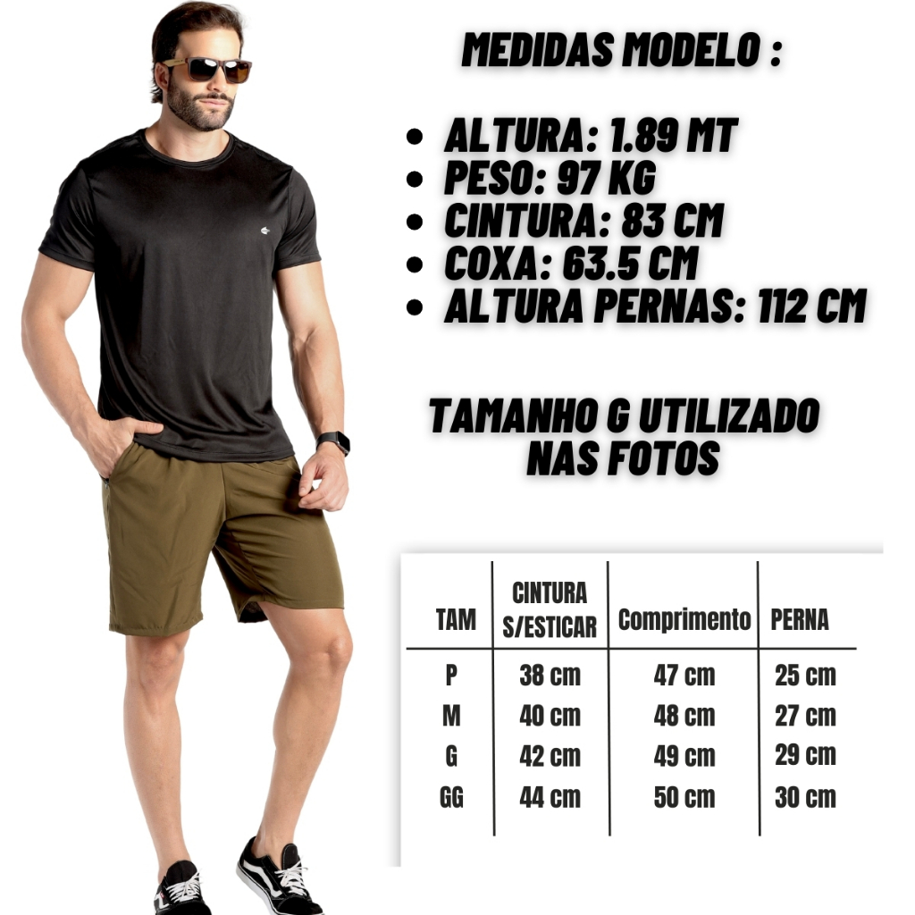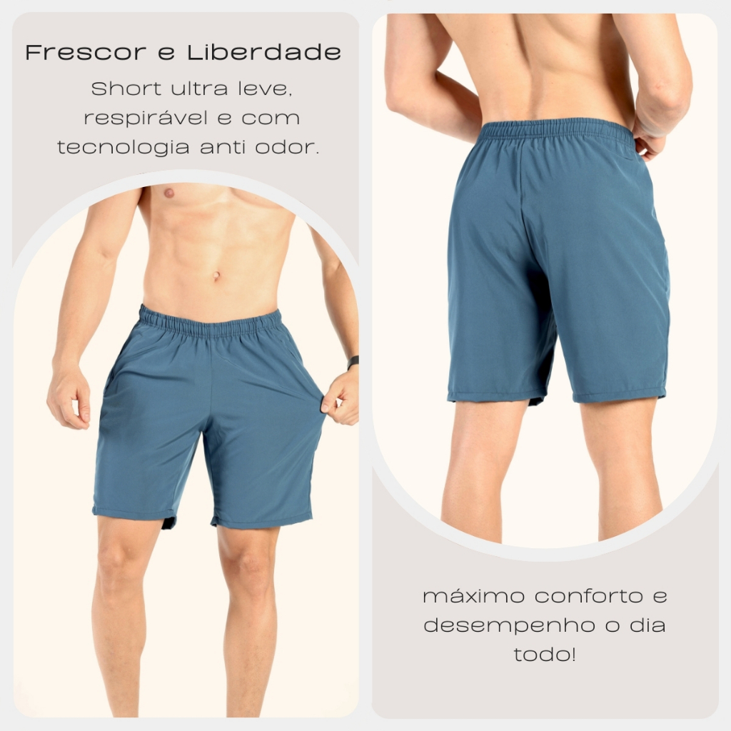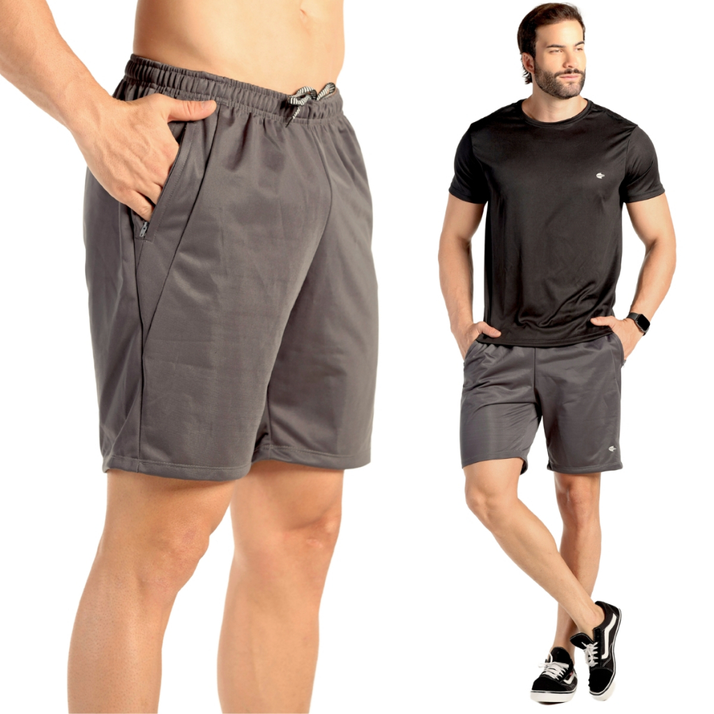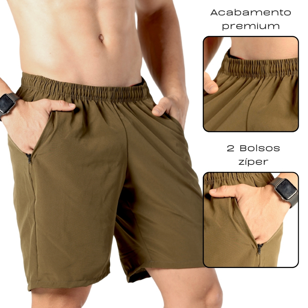 Bermuda Masculina Tactel Academia Treino Esportivo Fitness Short Bolso Zíper Ladofit
